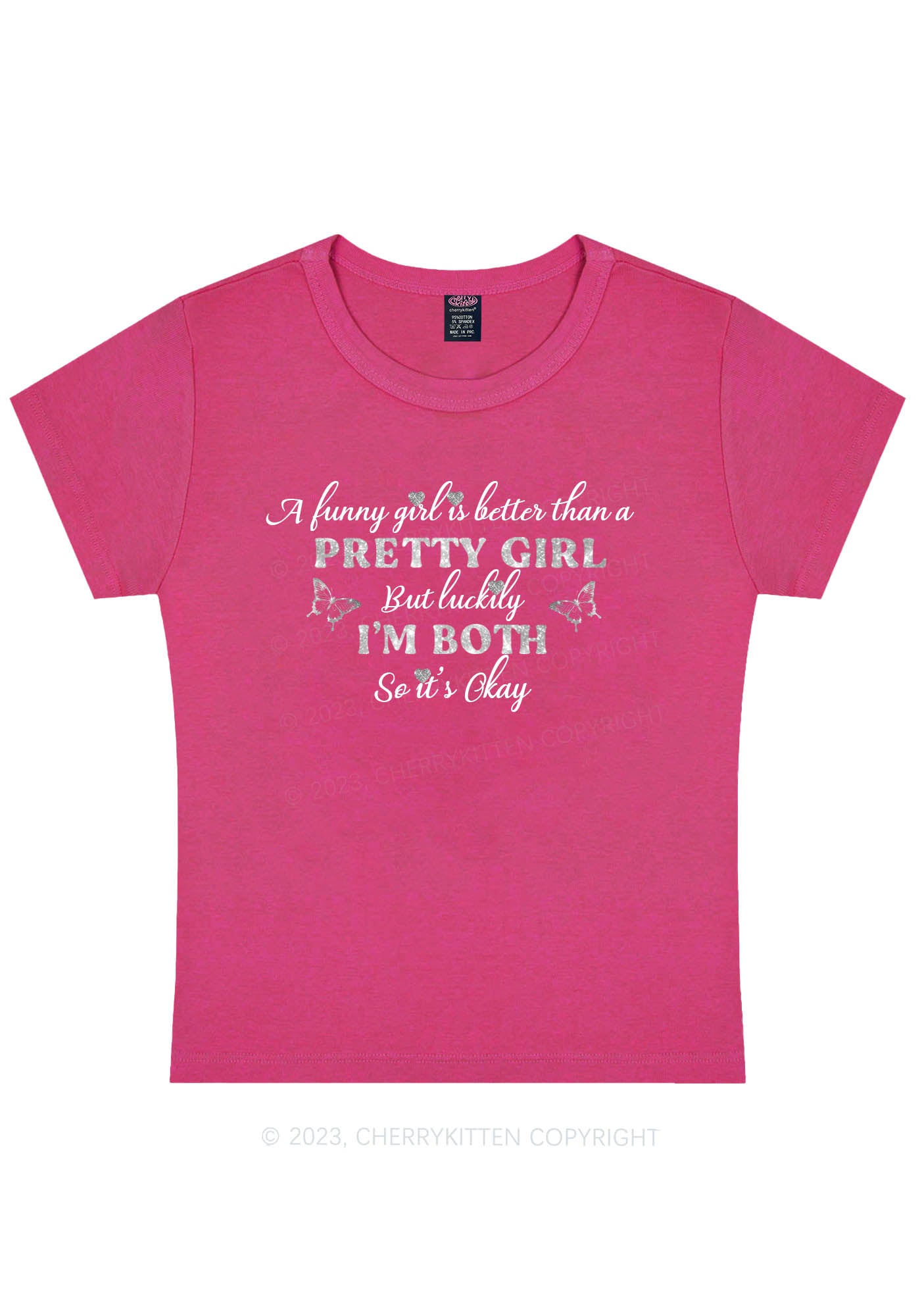 Curvy I'm Funny And Pretty Y2K Baby Tee Cherrykitten