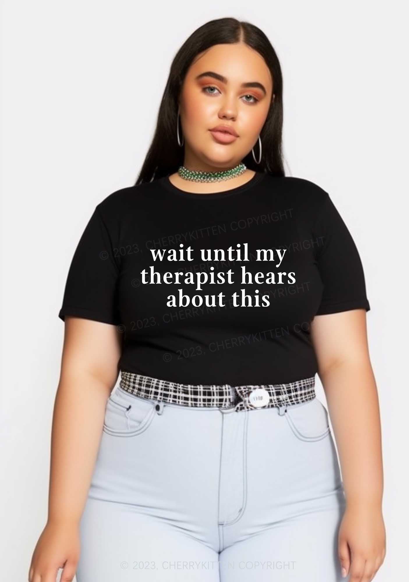 Curvy My Therapist Hears This Y2K Baby Tee Cherrykitten