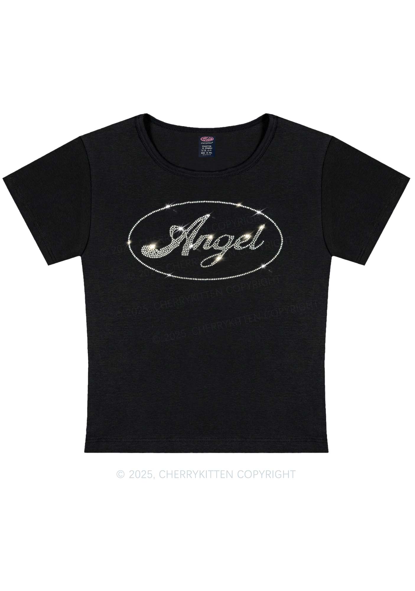 Curvy Rhinestone Angel Y2K Baby Tee Cherrykitten