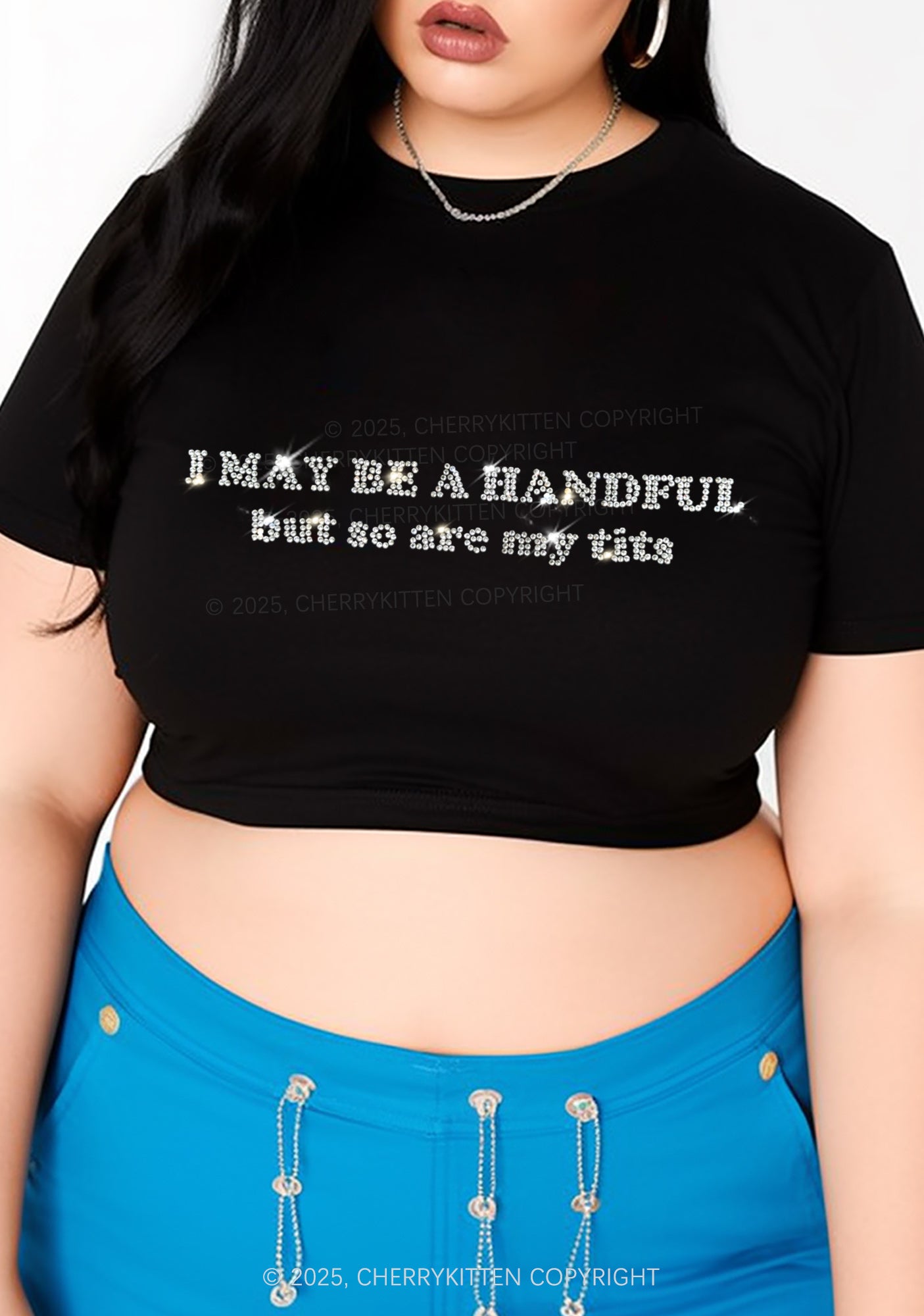 Curvy Rhinestone I May Be A Handful Y2K Baby Tee Cherrykitten