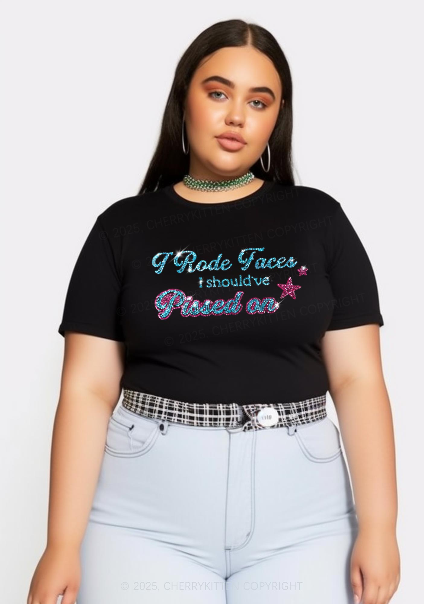 Curvy Rhinestone I Rode Faces Y2K Baby Tee Cherrykitten