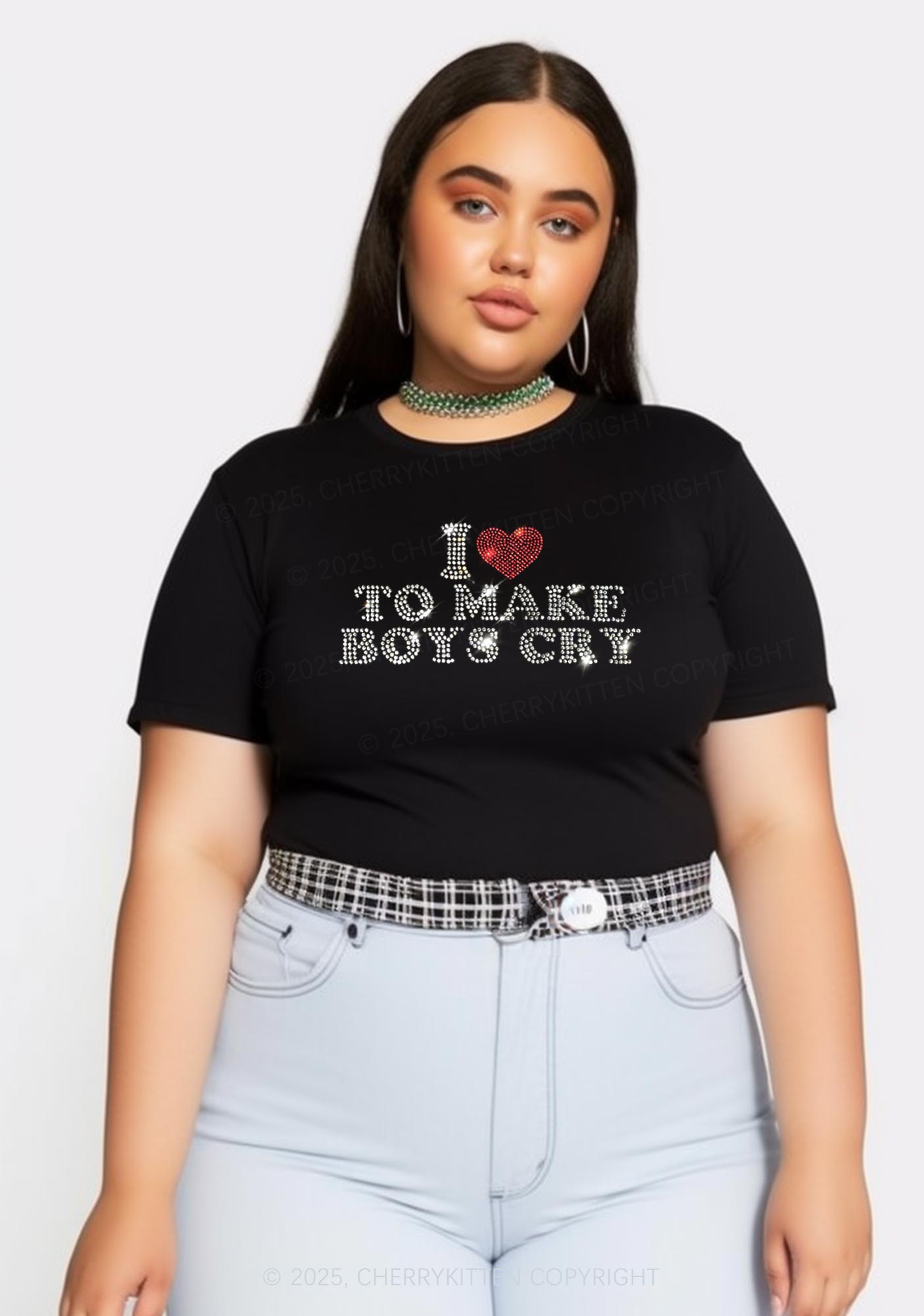 Curvy Rhinestone Love To Make Boys Cry Y2K Baby Tee Cherrykitten