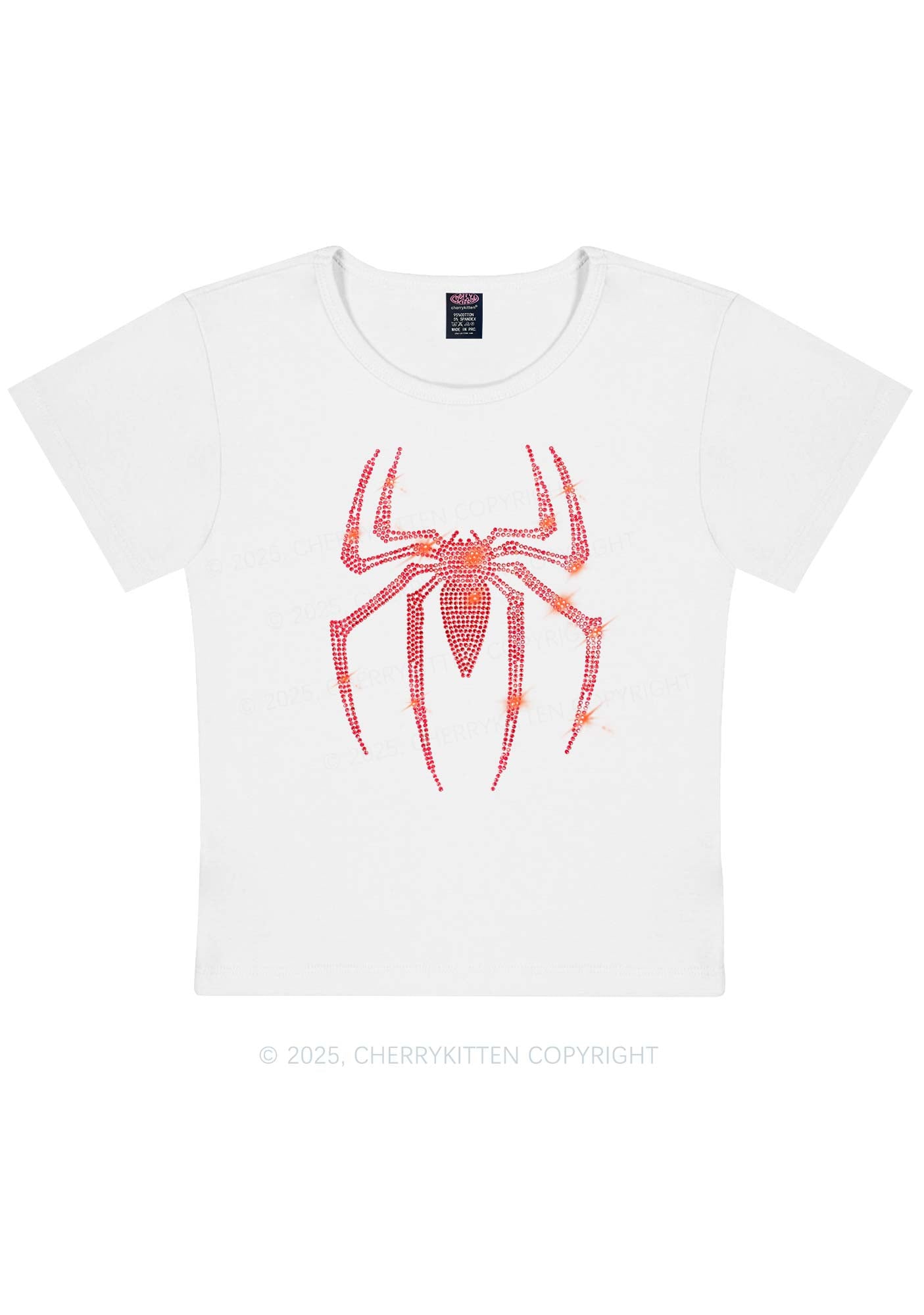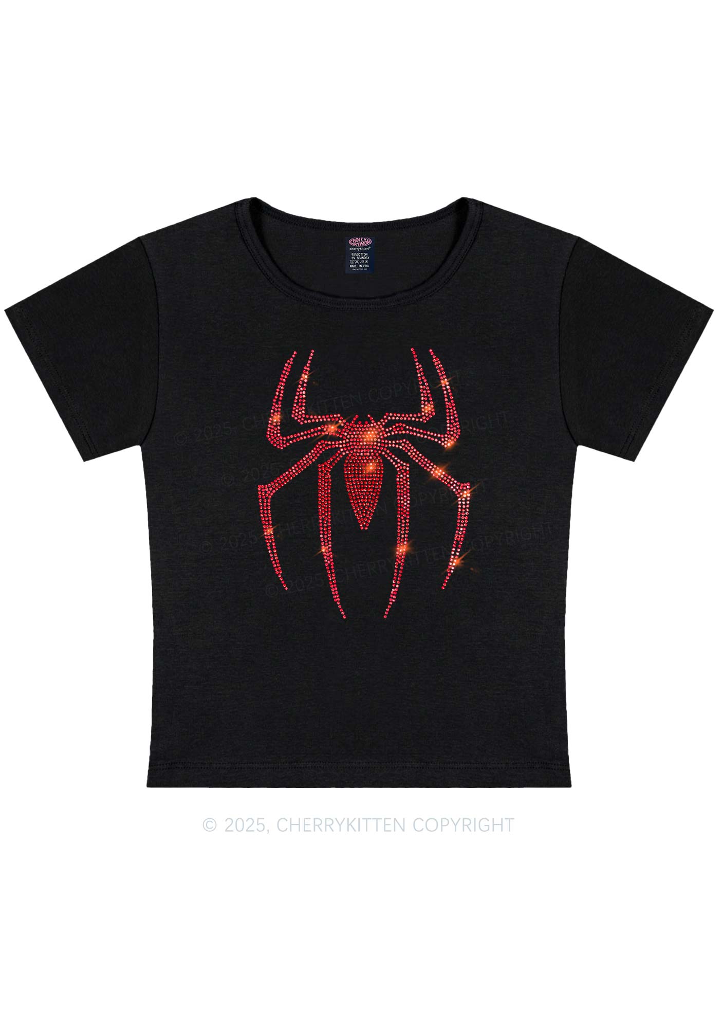Curvy Rhinestone Red Spider Y2K Baby Tee Cherrykitten