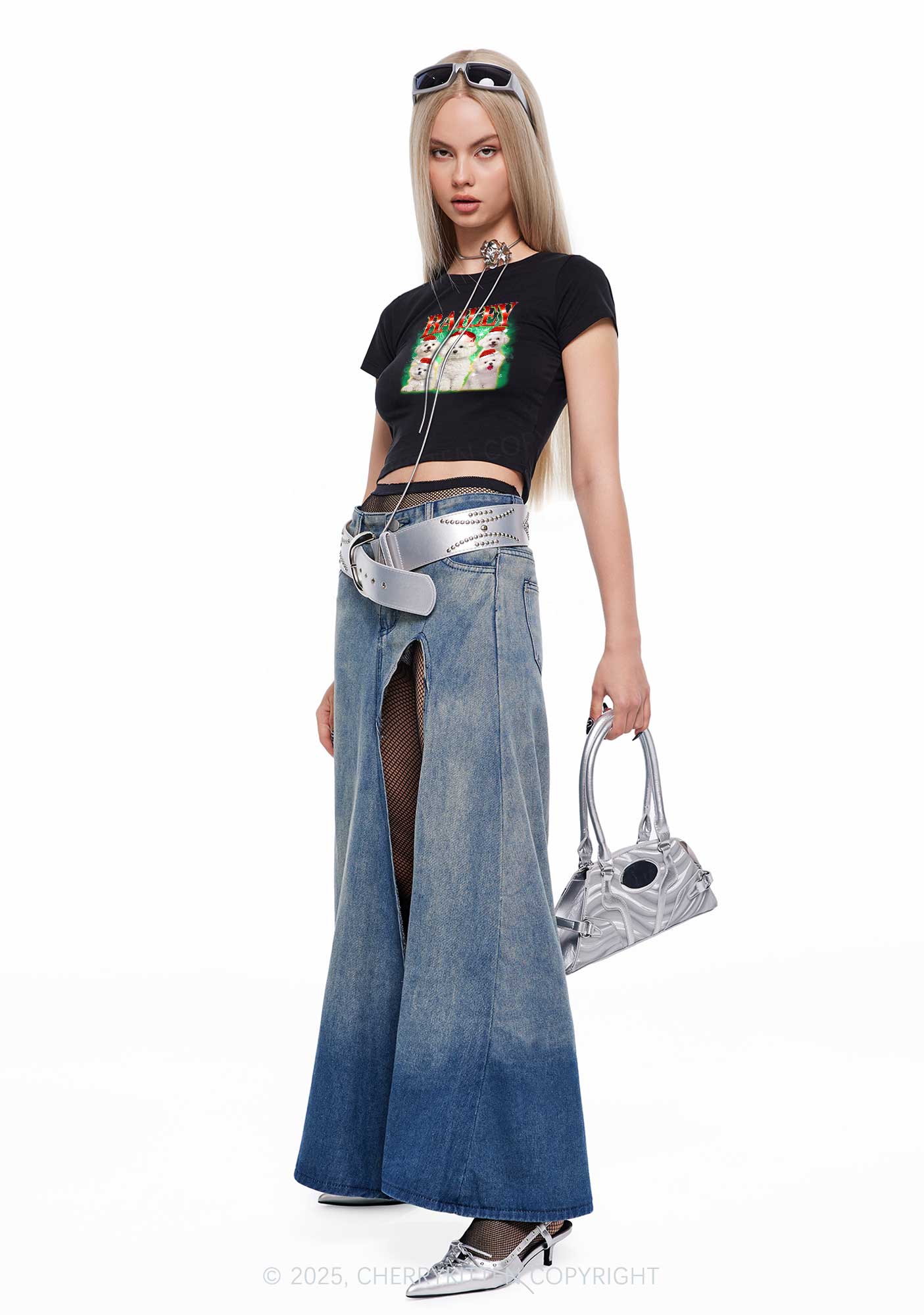 Custom Christmas Puppy Y2K Baby Tee Cherrykitten