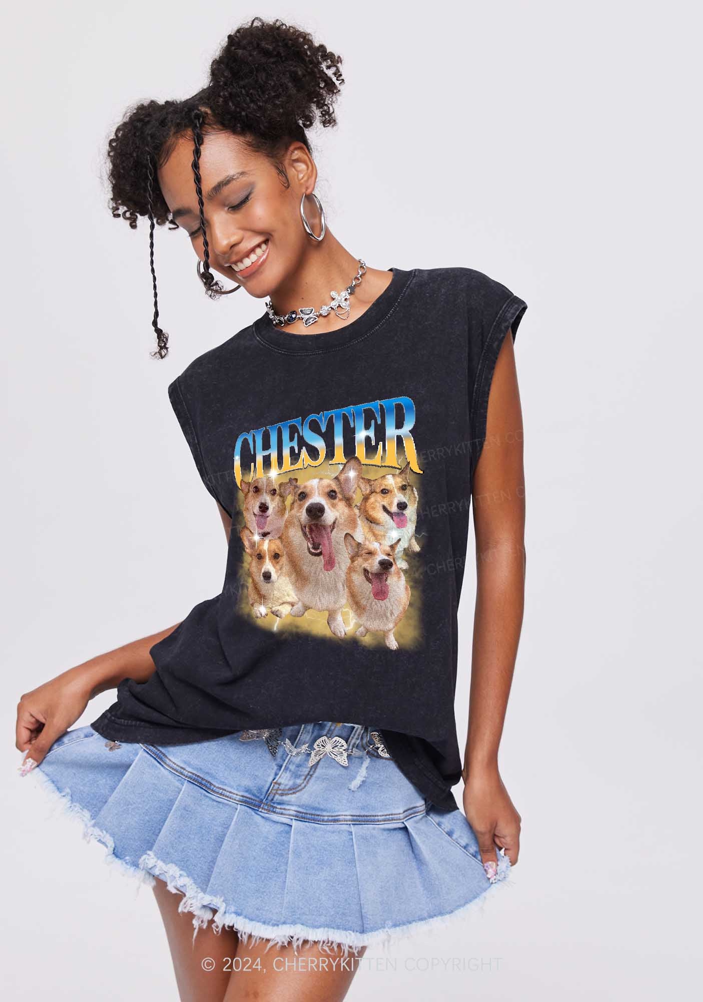 Custom Dog Photo Y2K Washed Tank Cherrykitten
