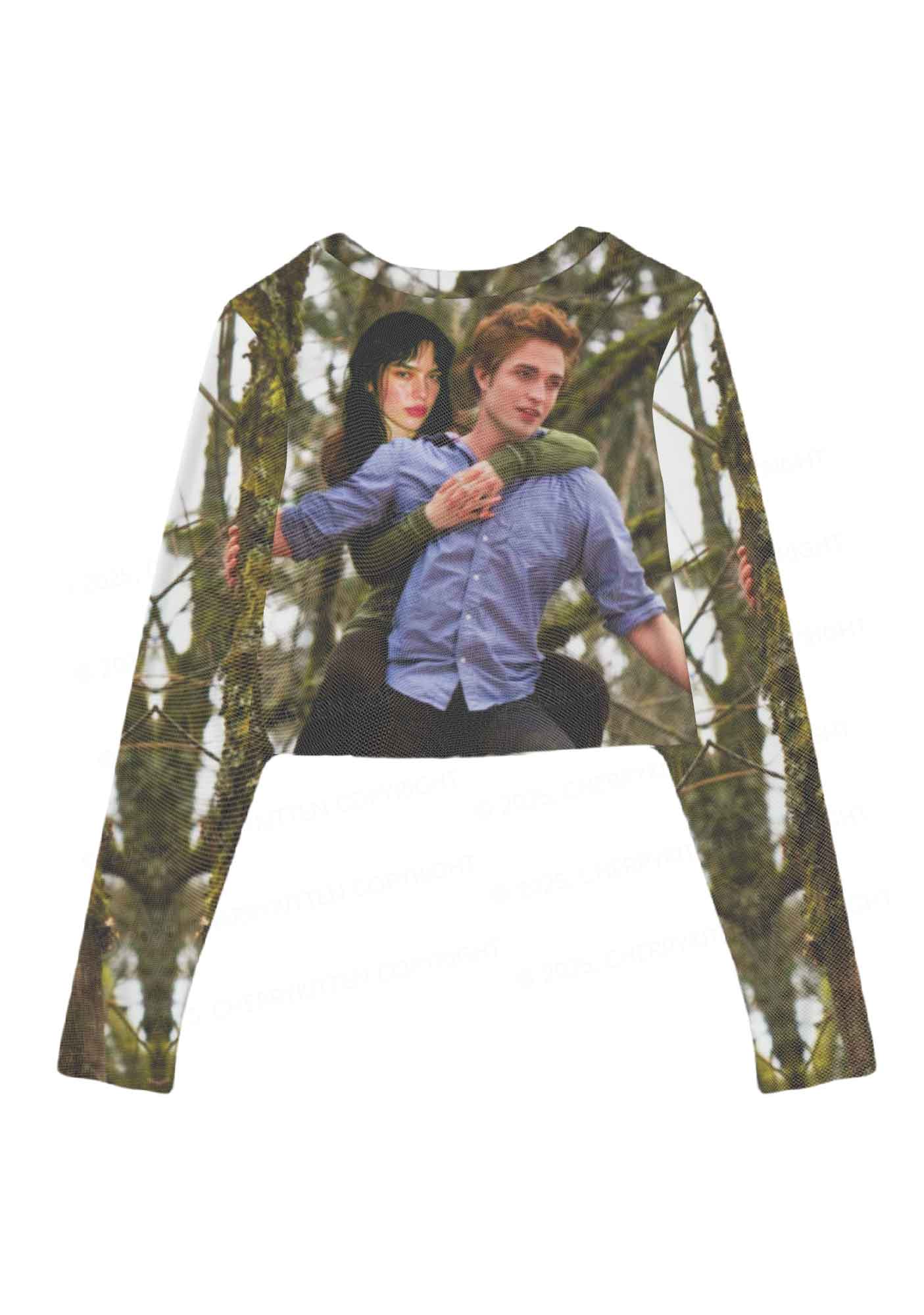 Custom Face Y2K Mesh Long Sleeve Crop Top Cherrykitten