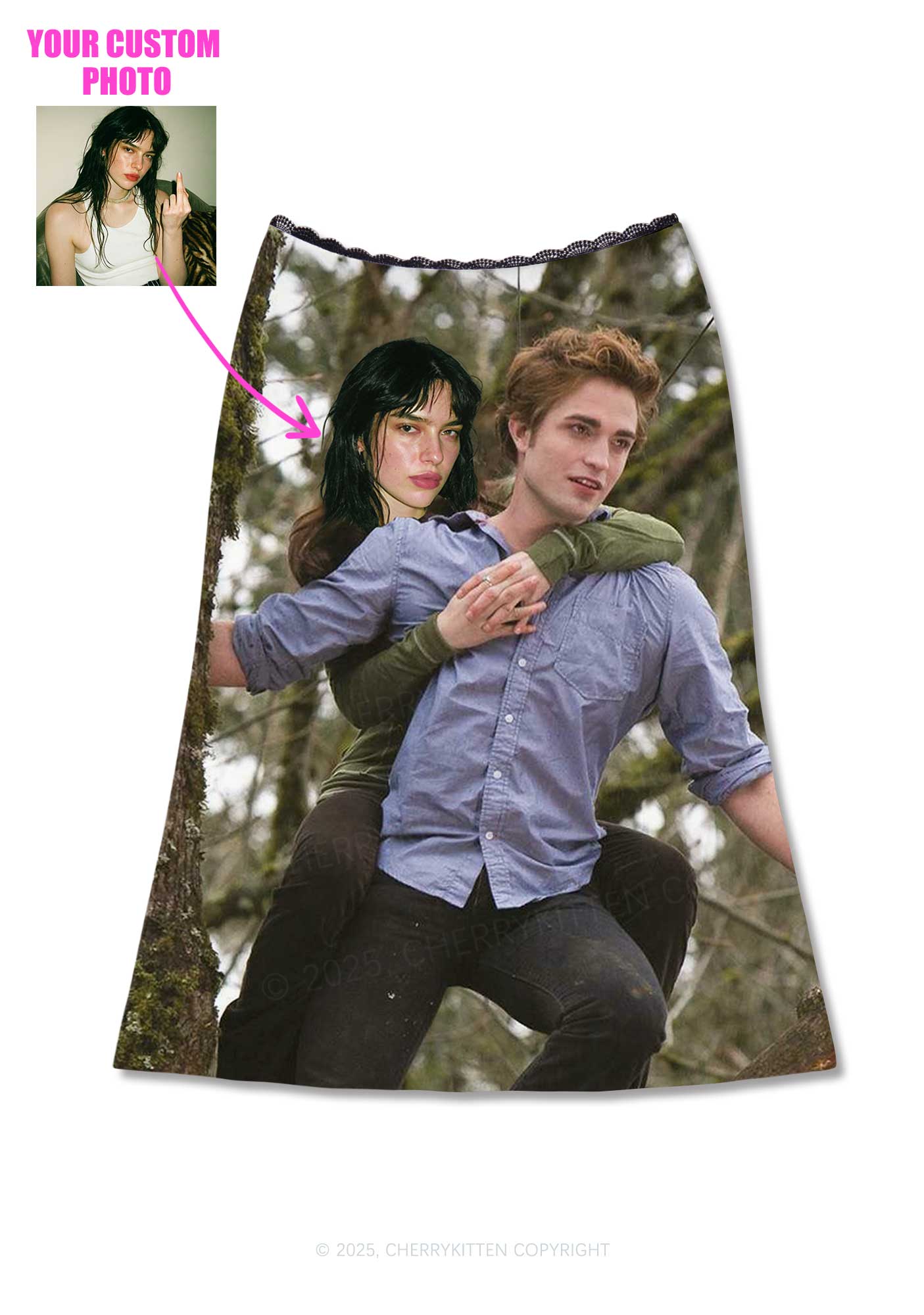 Custom Face Y2K Print Midi Skirt Cherrykitten