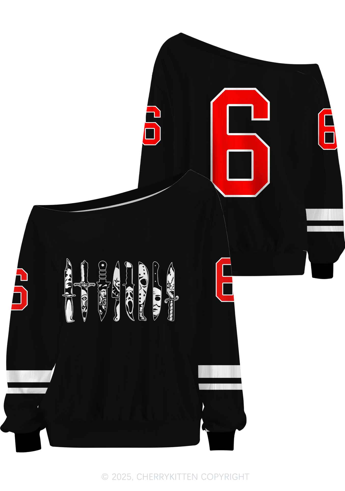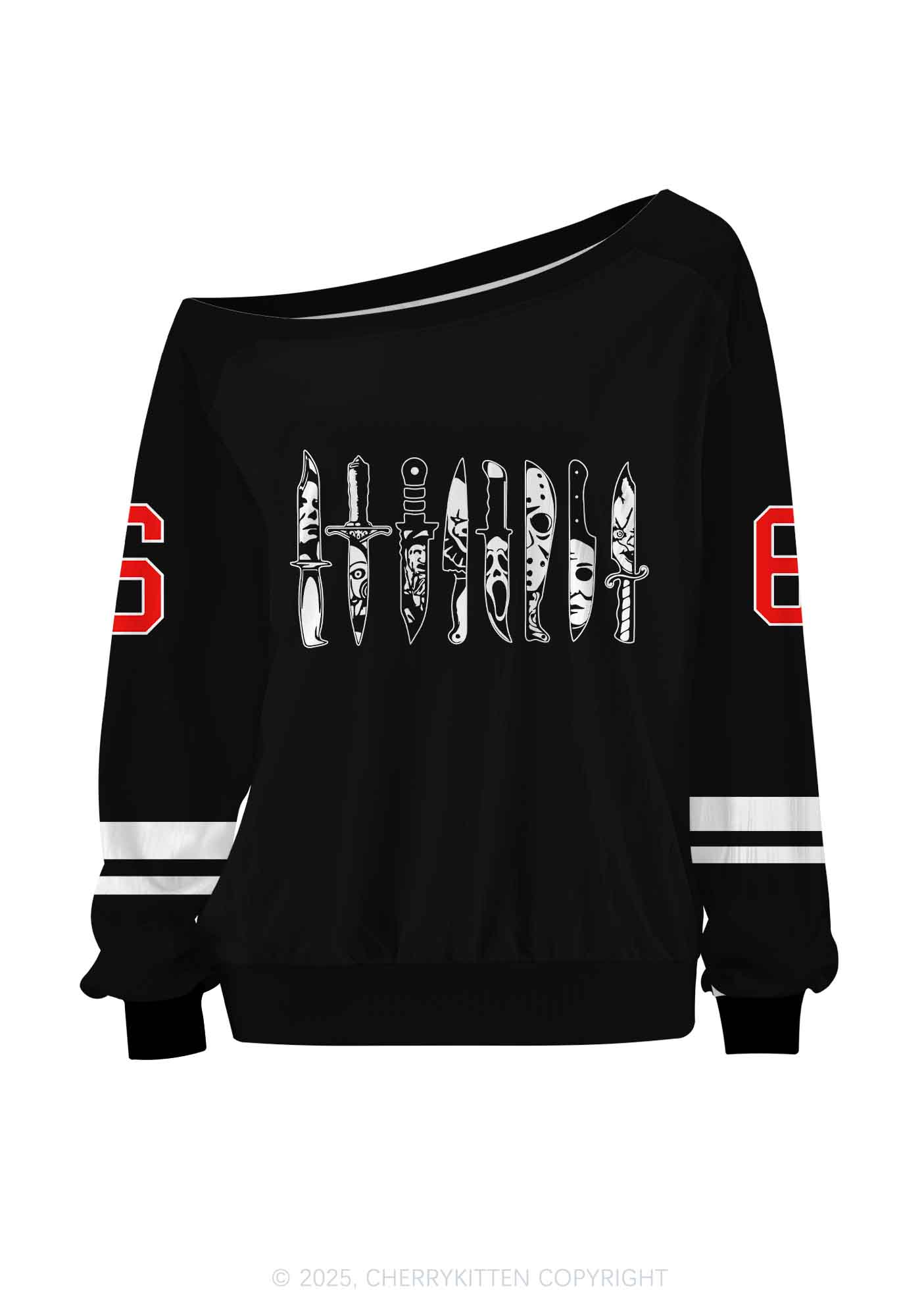 Custom Halloween Ghost Knife Y2K Off Shoulder Long Sleeve Sport Jersey Shirts Cherrykitten