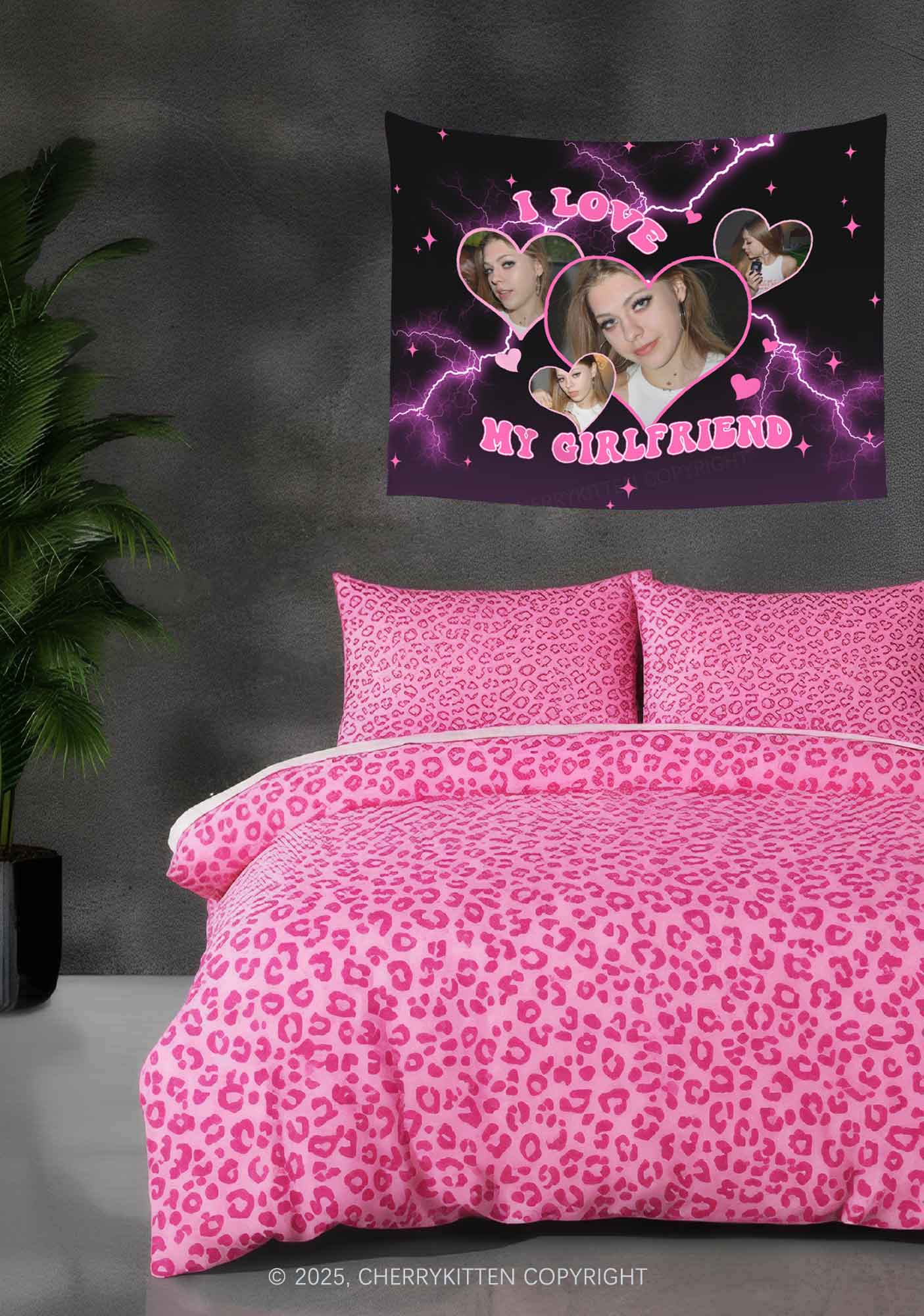 Custom I Love My Girlfriend Valentine's Day Flag Y2K Tapestry Cherrykitten