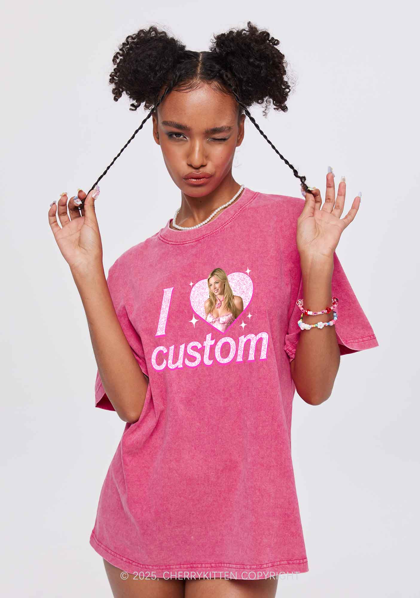 Custom I Love Photo Y2K Shirts Washed Tee Cherrykitten