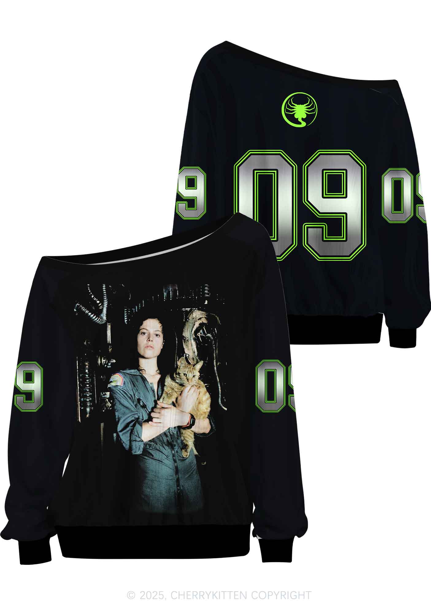 Custom Kitten And Girl Y2K Off Shoulder Long Sleeve Sport Jersey Shirts Cherrykitten