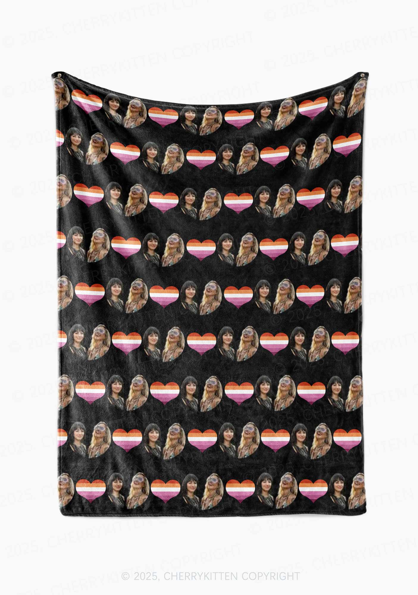 Custom Lesbian Couple Photo Valentine's Day Y2K Plush Blanket Cherrykitten