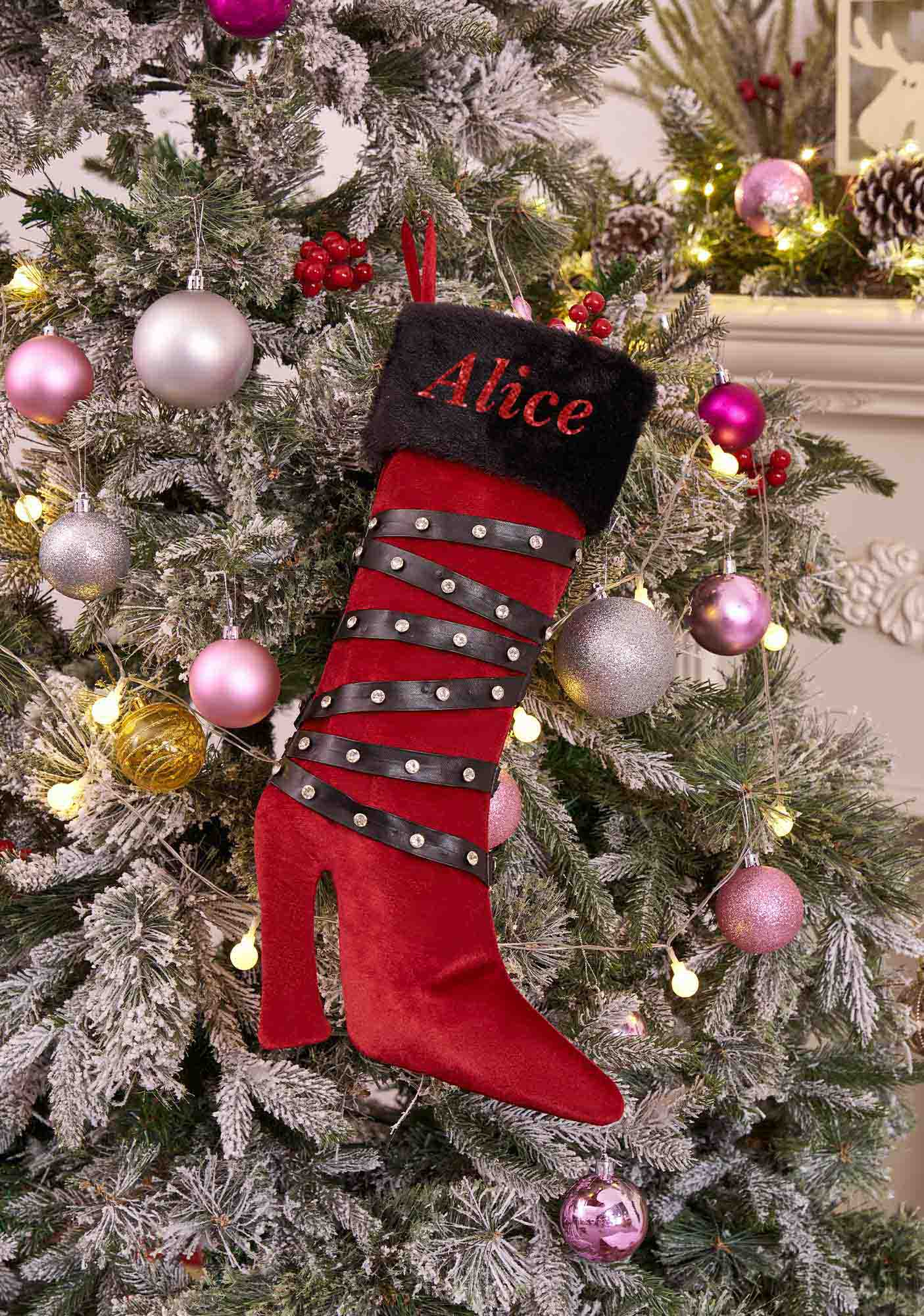 Custom Name Red High Heels Y2K Christmas Stockings Cherrykitten
