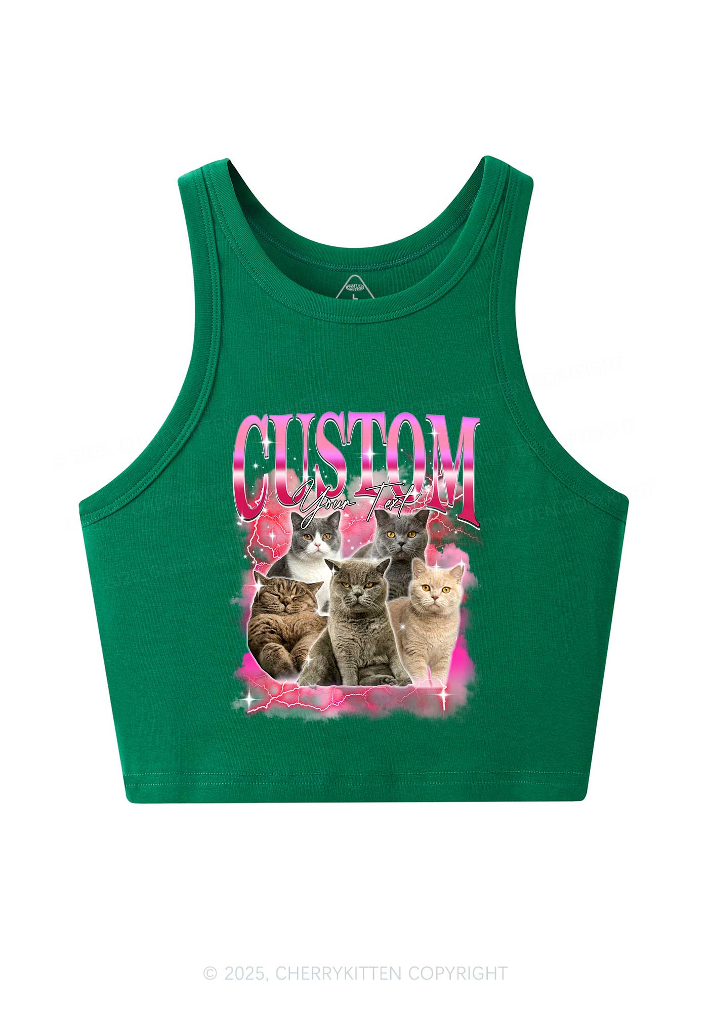 Custom Neon Lightning Cat Photo Y2K Crop Tank Top Cherrykitten