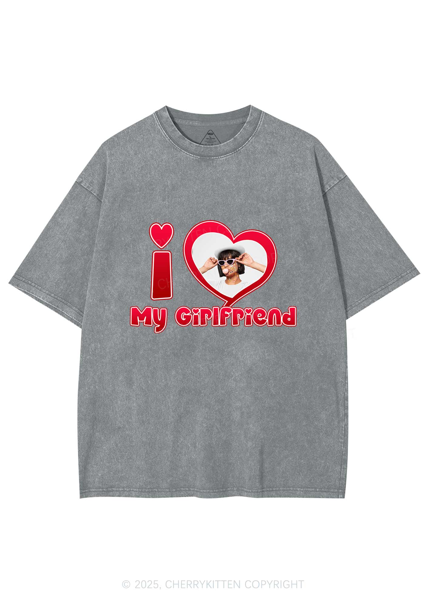 Custom Photo Red Heart Y2K Valentine's Day Washed Tee Cherrykitten