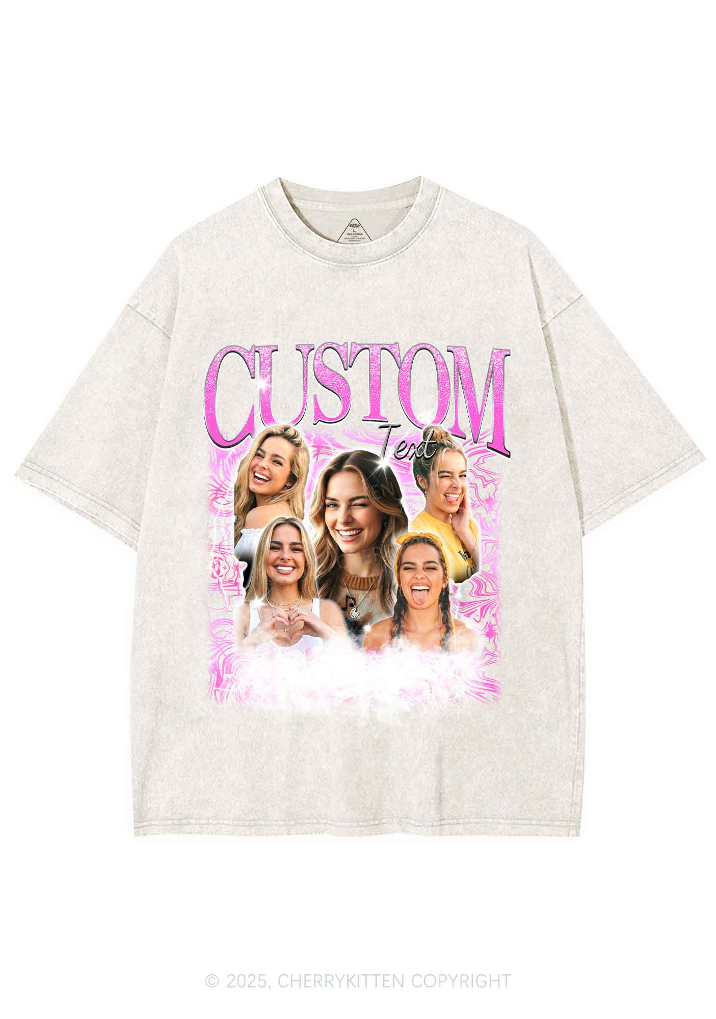 Custom Portrait Glitter Text Y2K Shirts Washed Tee Cherrykitten