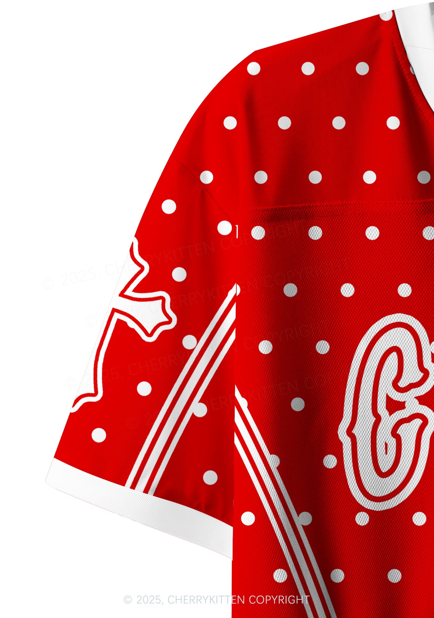 Custom Red Polka Dots Cxxt Y2K Crop Sport Jersey Shirts Cherrykitten