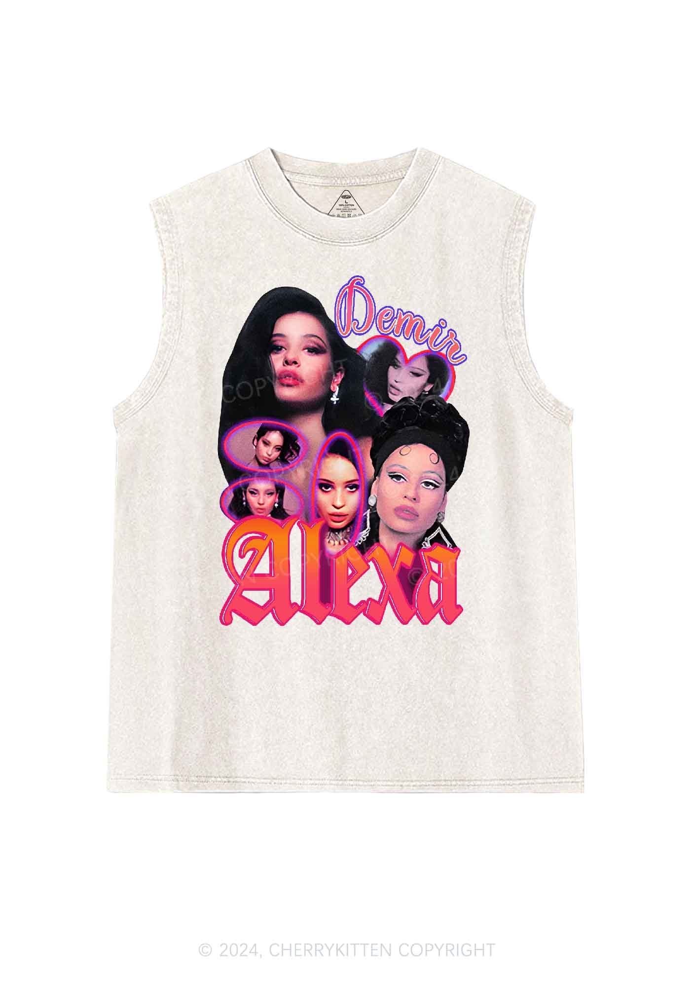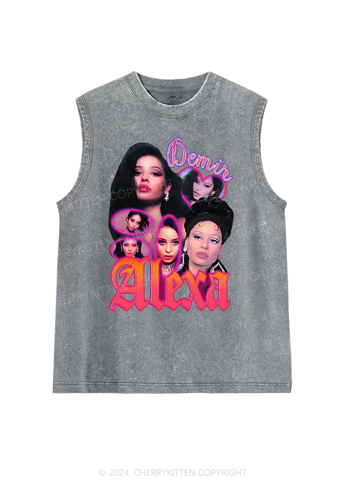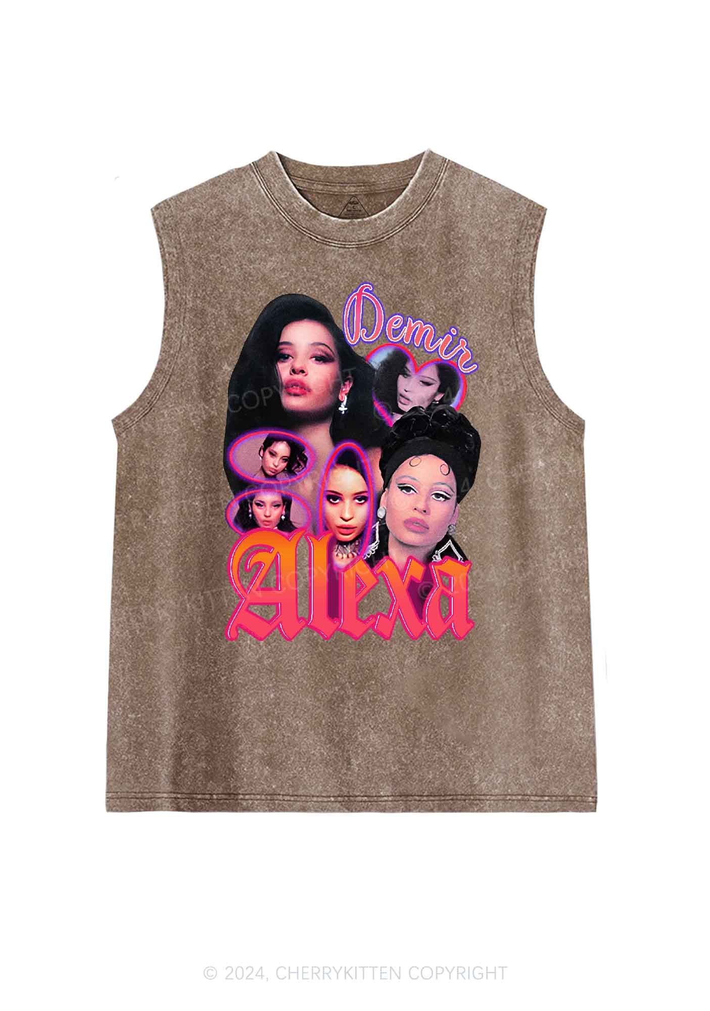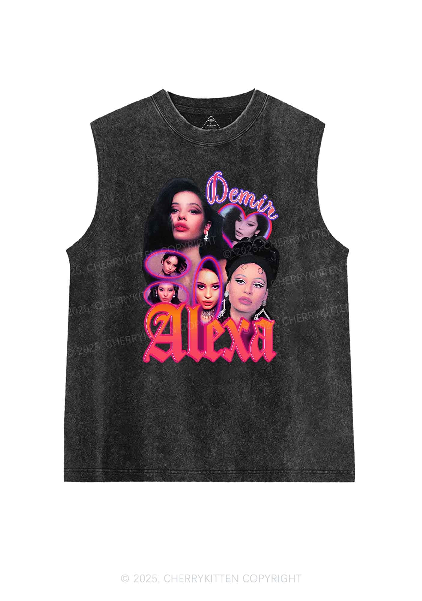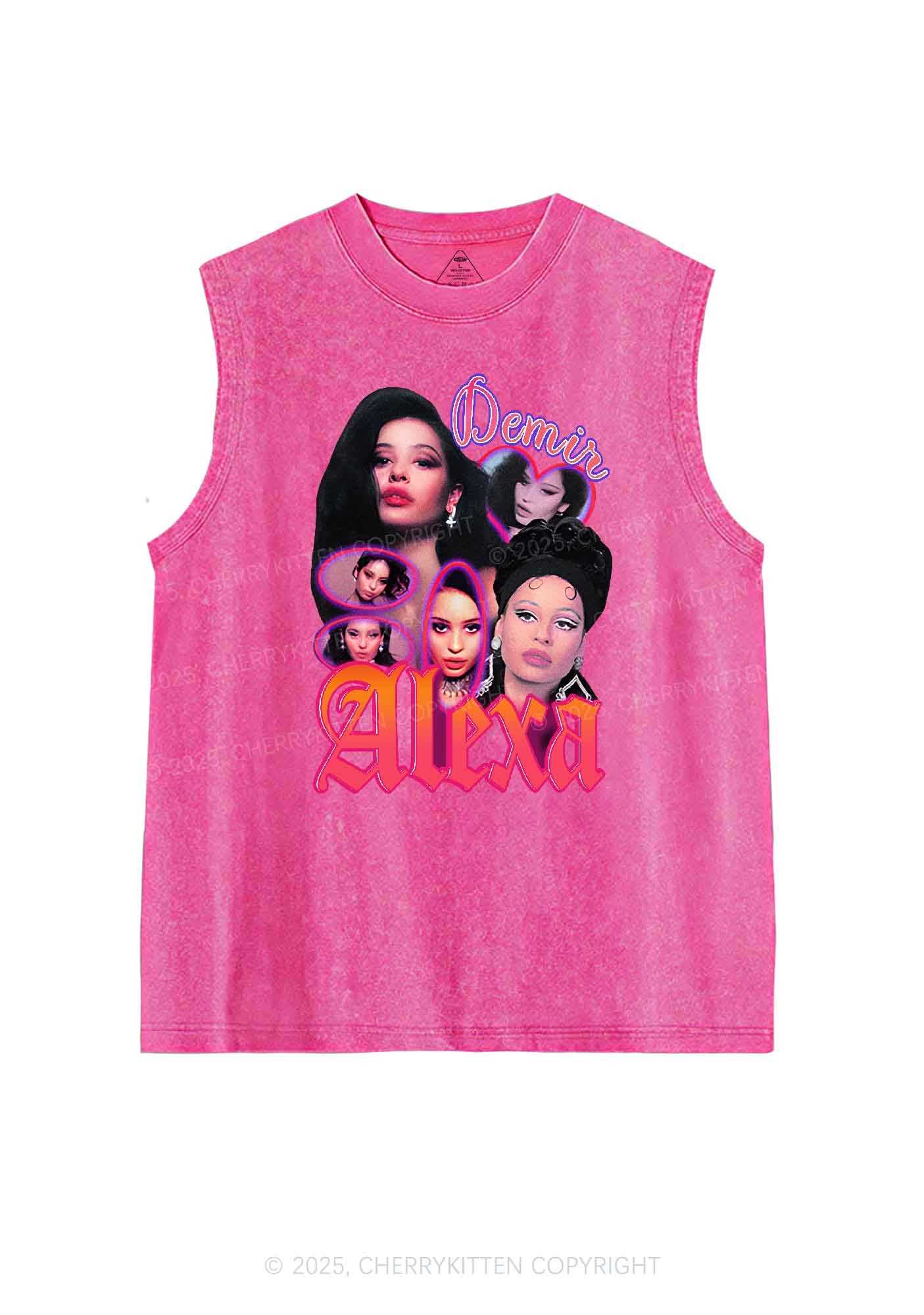 Custom Retro Portrait Y2K Washed Tank Cherrykitten