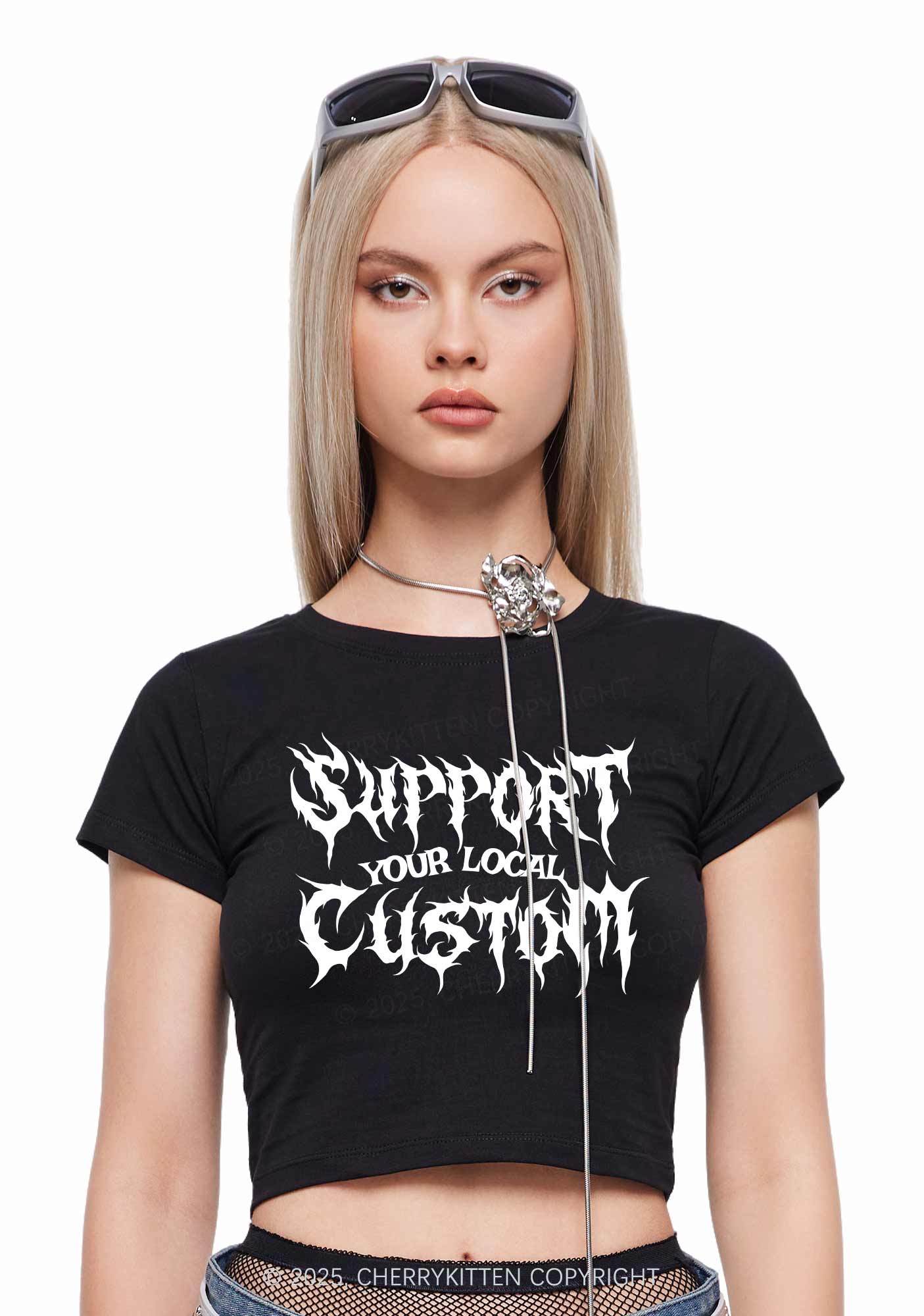 Custom Support Your Local Y2K Baby Tee Cherrykitten