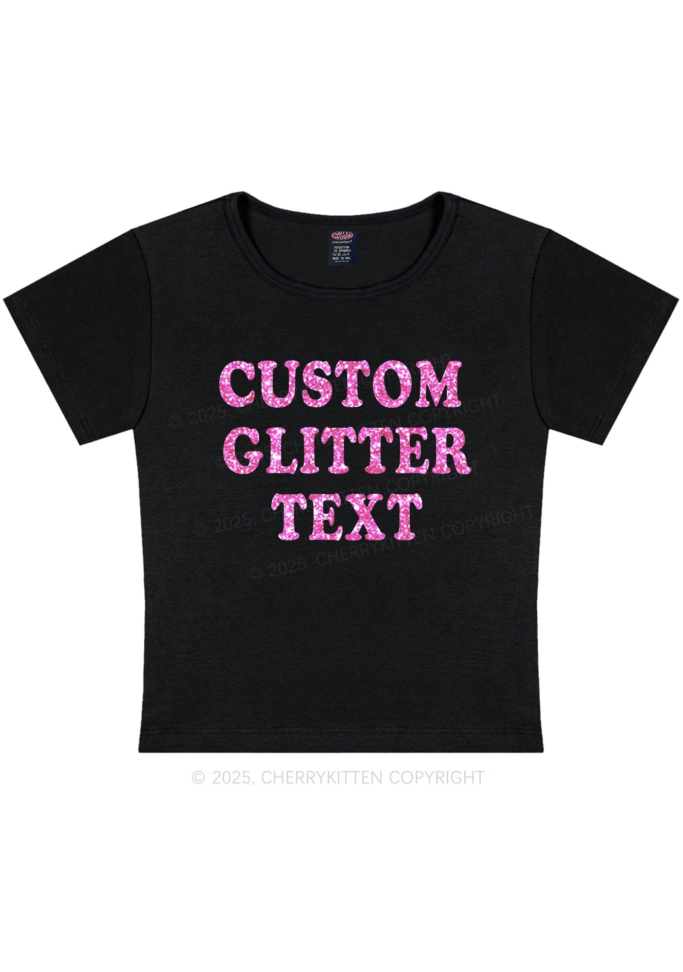 Custom Text Glitter Y2K Baby Tee Cherrykitten