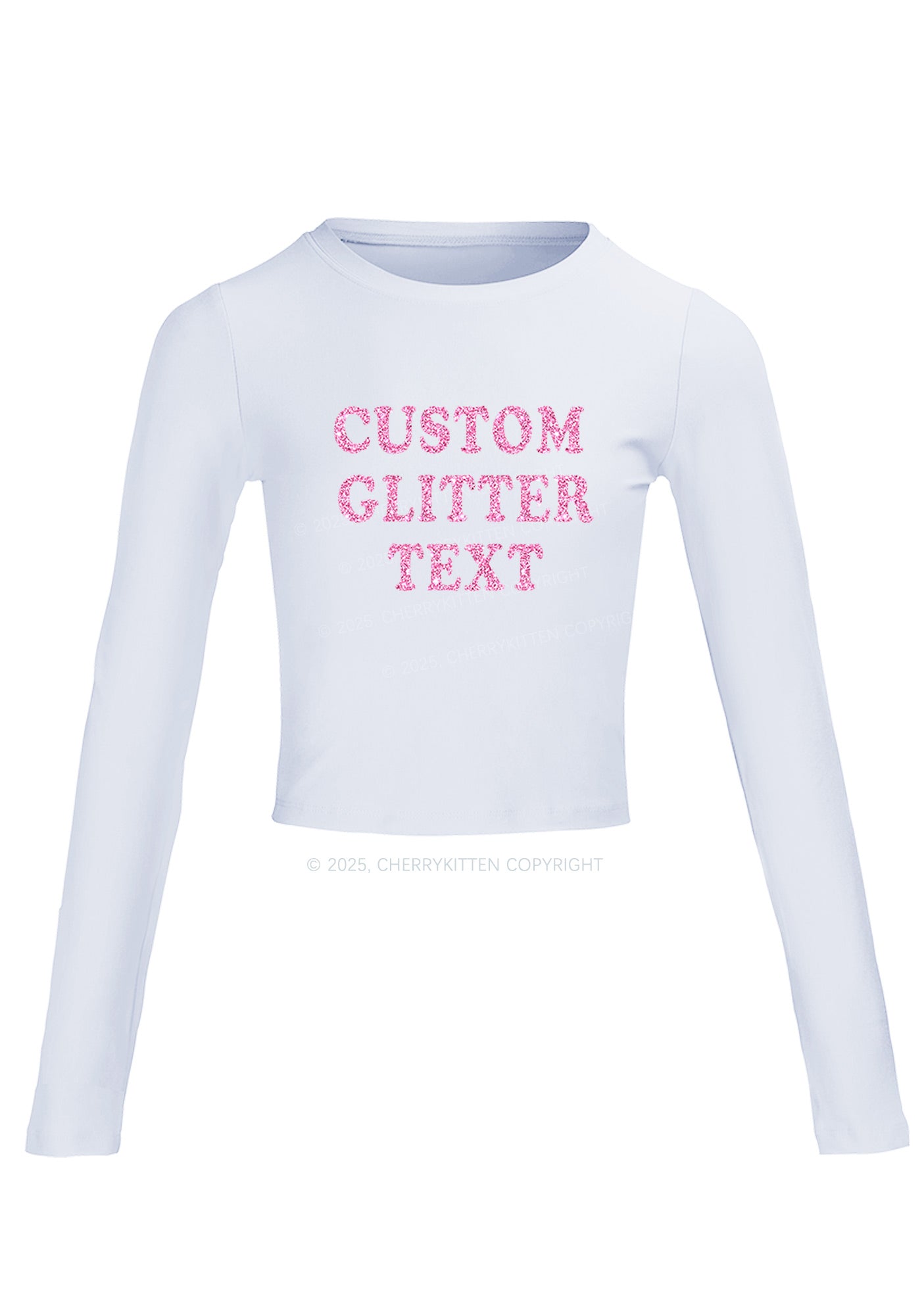 Custom Text Glitter Y2K Long Sleeve Crop Top Cherrykitten