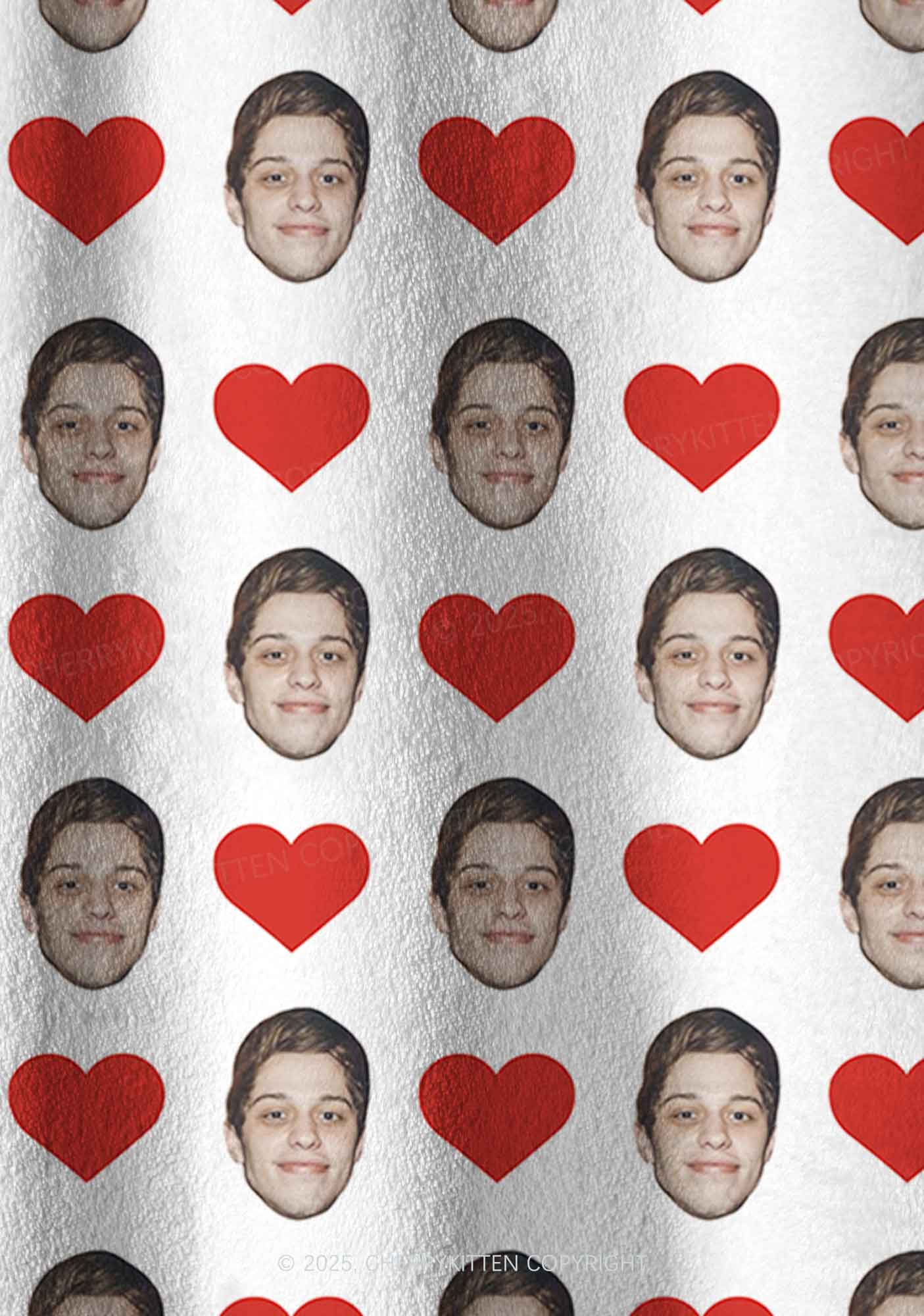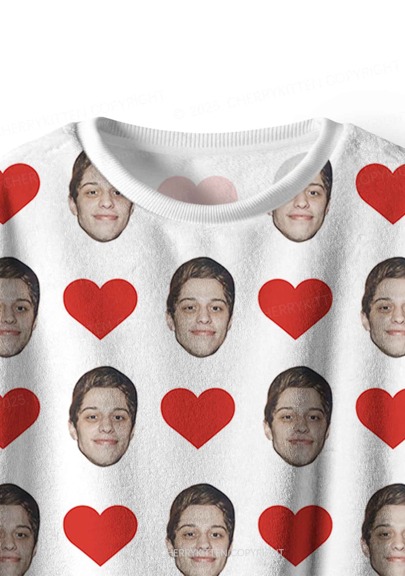 Custom White Hearts Photo Y2K Valentine's Day Y2K Fleece Long Sleeve Pajama Set Cherrykitten
