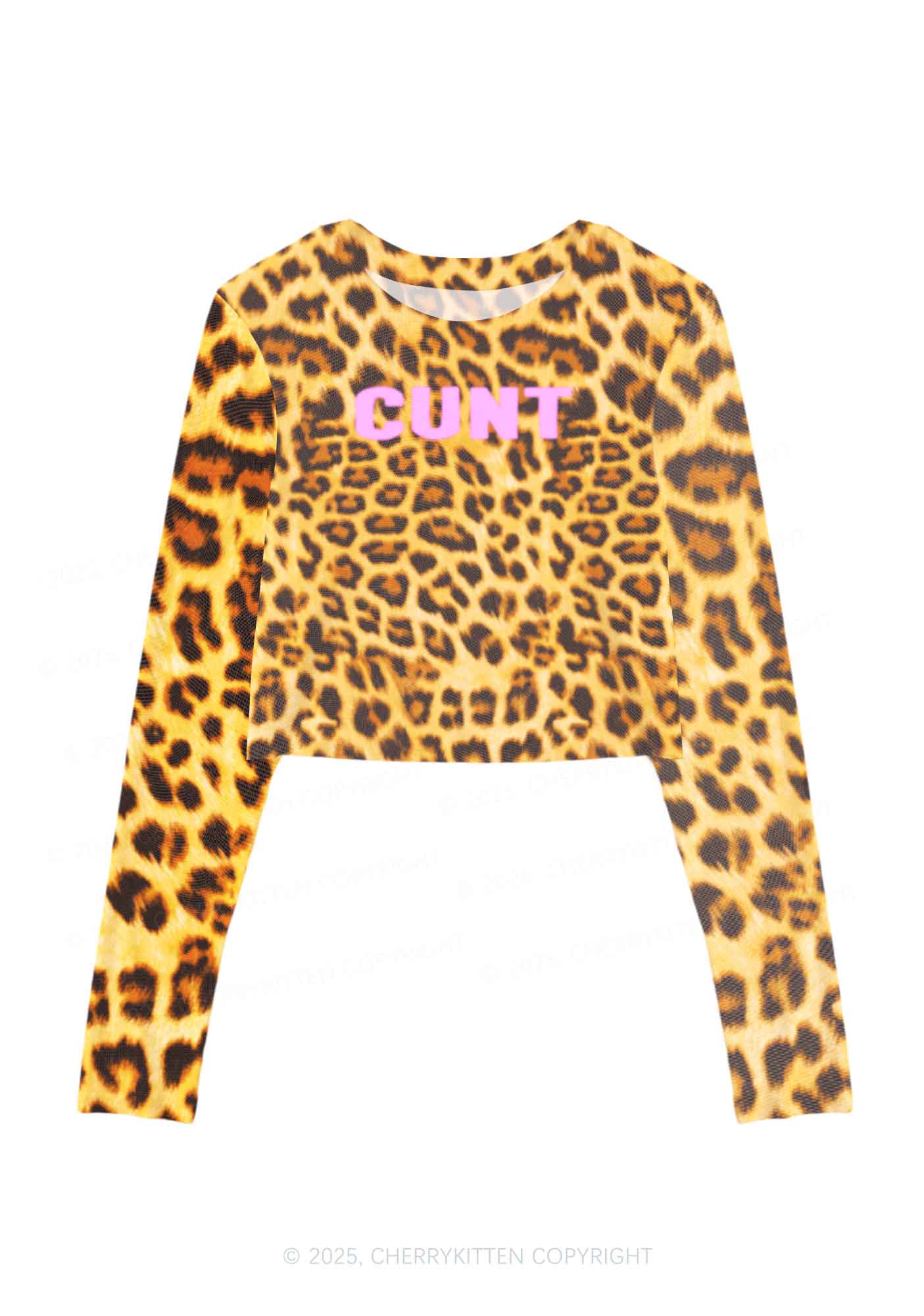 Cxxt Leopard Y2K Mesh Long Sleeve Crop Top Cherrykitten