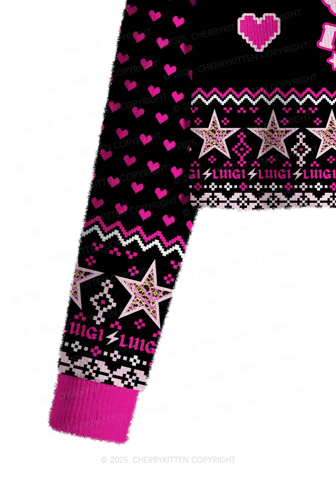 Daddy I Love Him Luigi Y2K Christmas Crop Knit Sweatshirt Cherrykitten