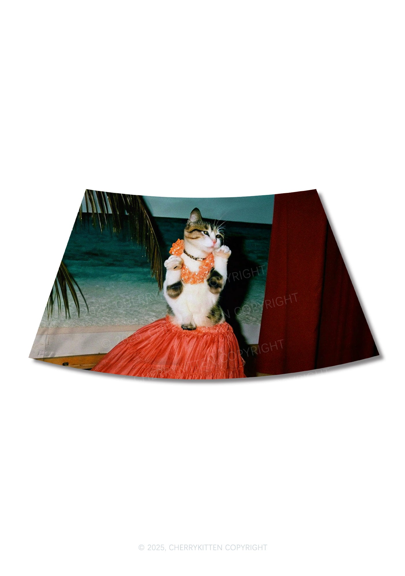 Dancing Cat Y2K Print Mini Skirt Cherrykitten
