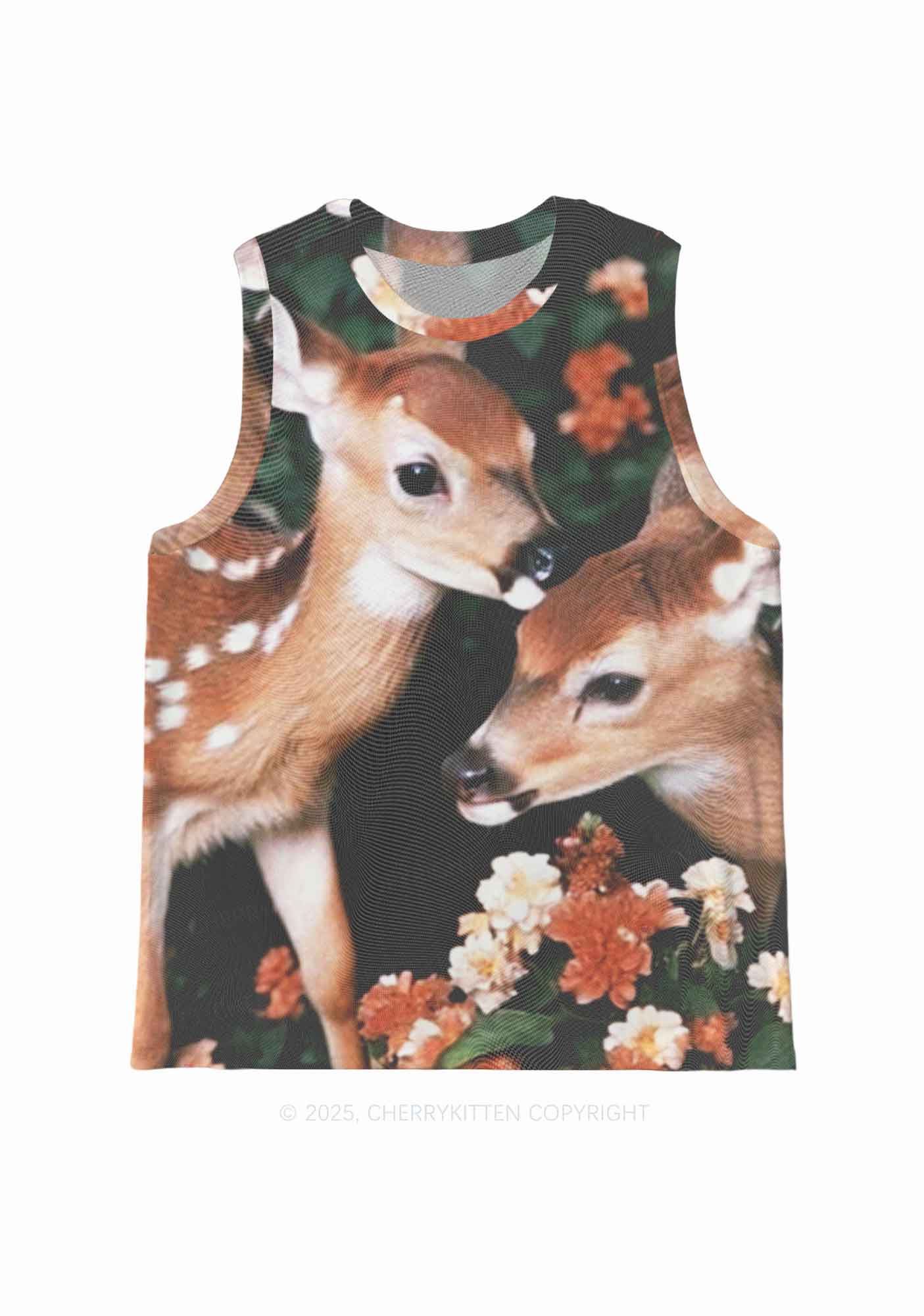 Deer Flowers Y2K Mesh Muscle Tank Cherrykitten