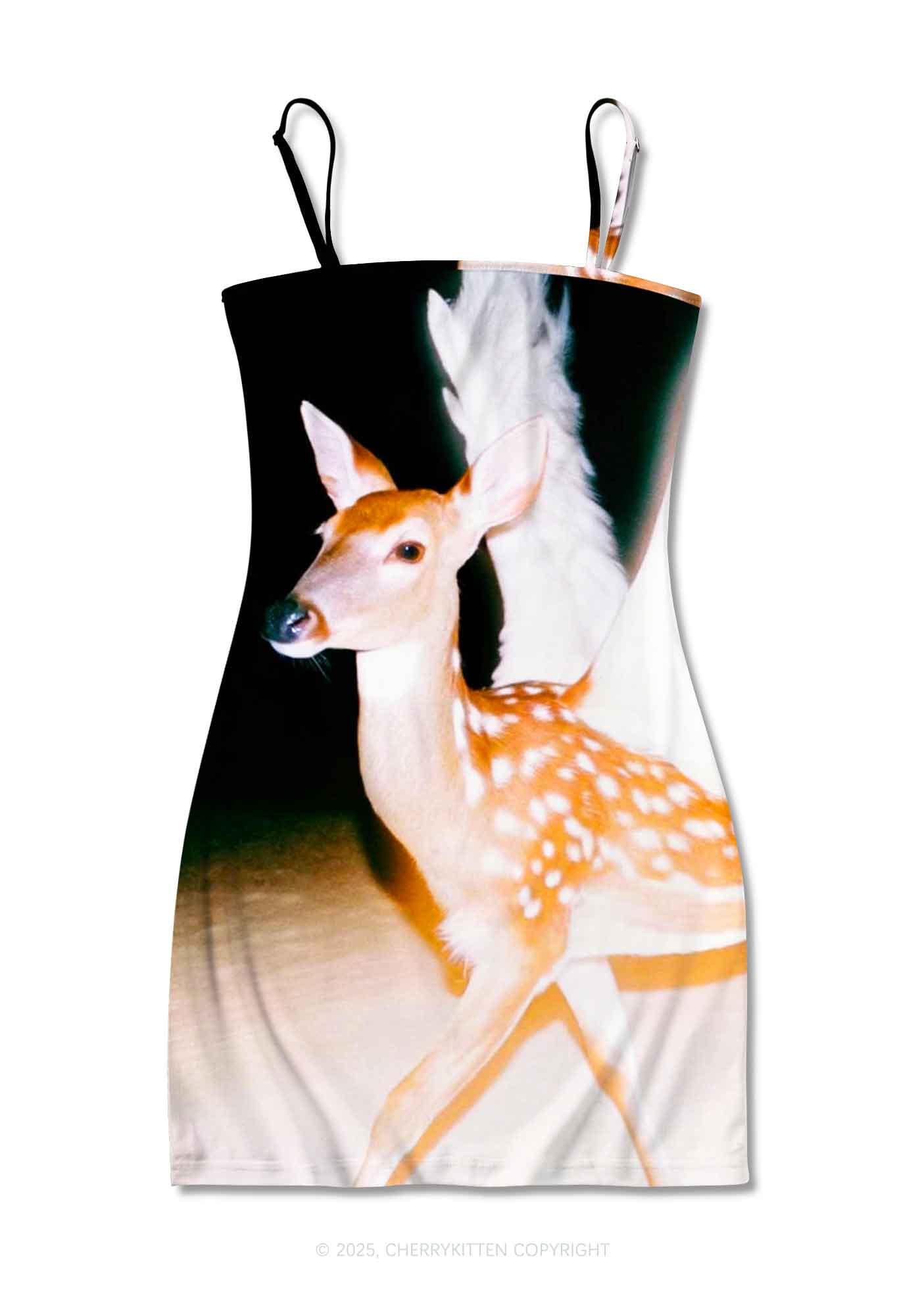 Deer Wings Y2K Print Slip Dress Cherrykitten