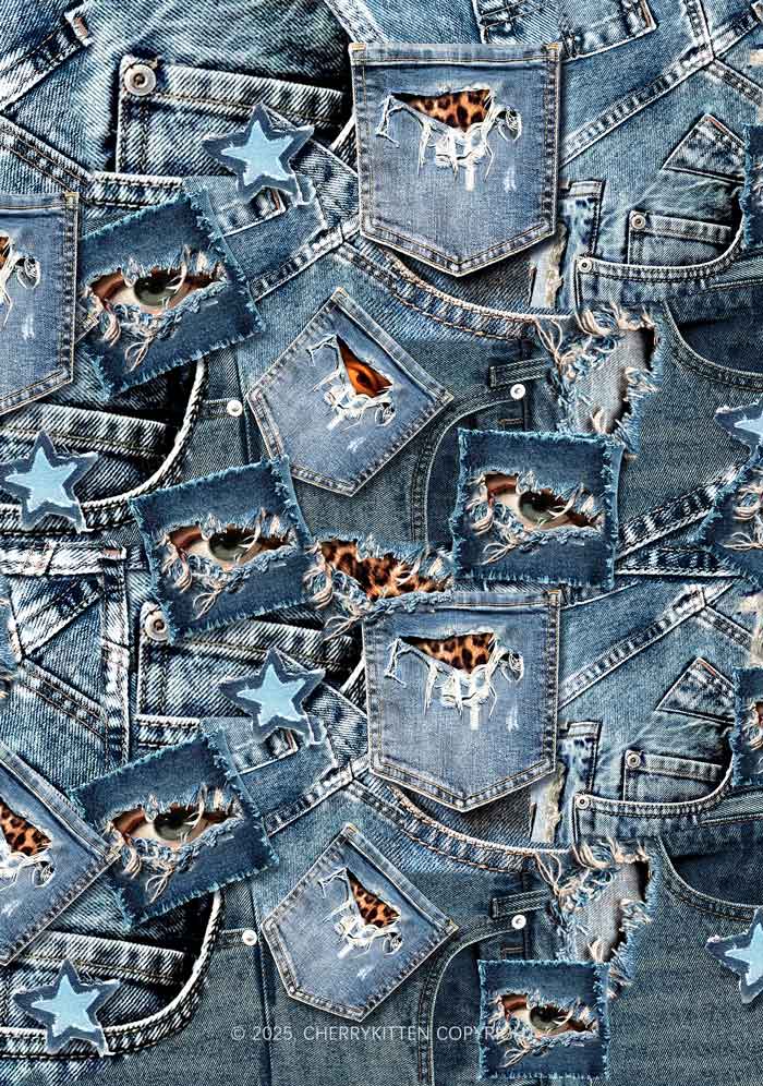 Denim Patchwork Y2K Print Midi Skirt Cherrykitten