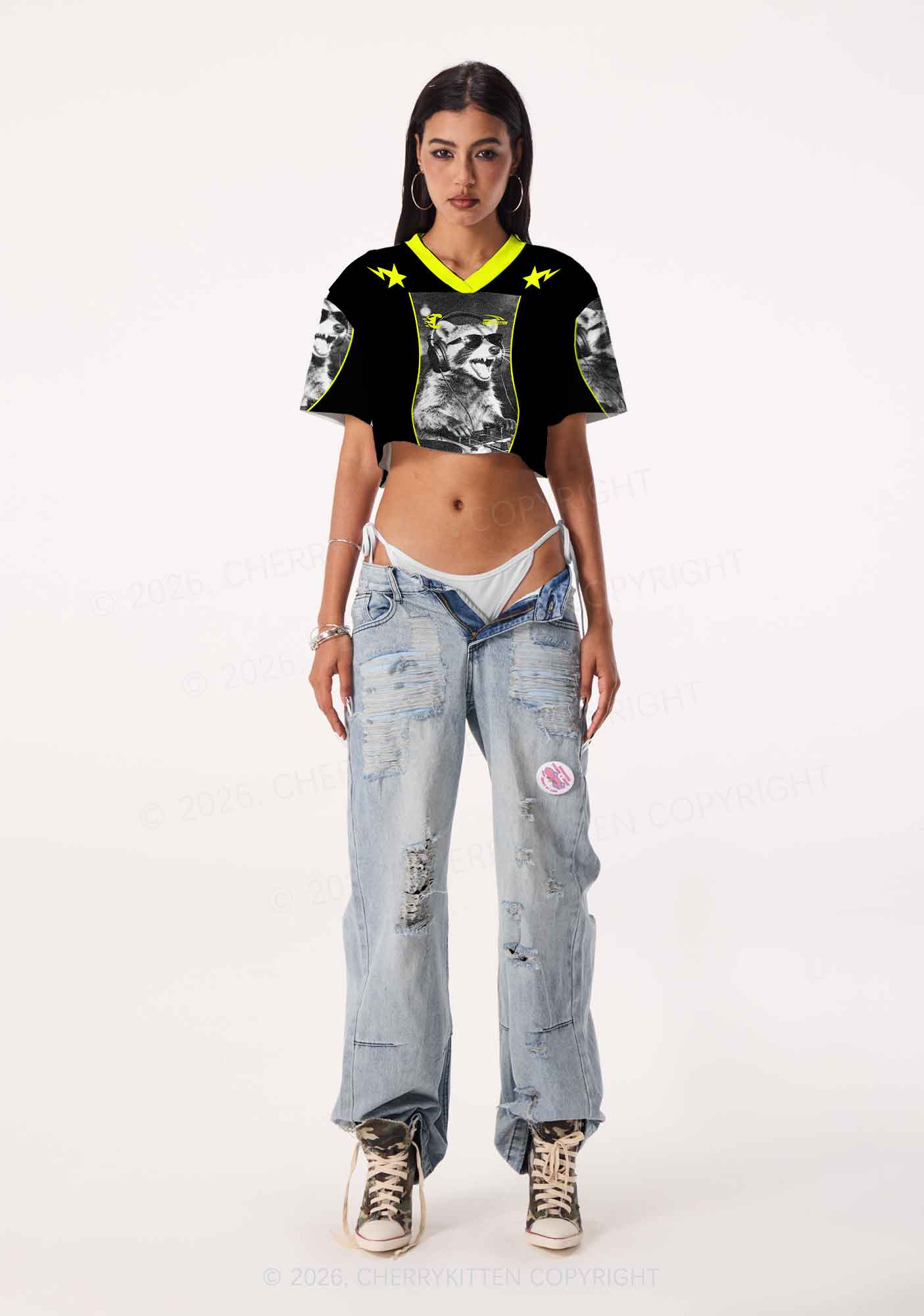 DJ Raccoon Y2K Crop Sport Jersey Shirts Cherrykitten