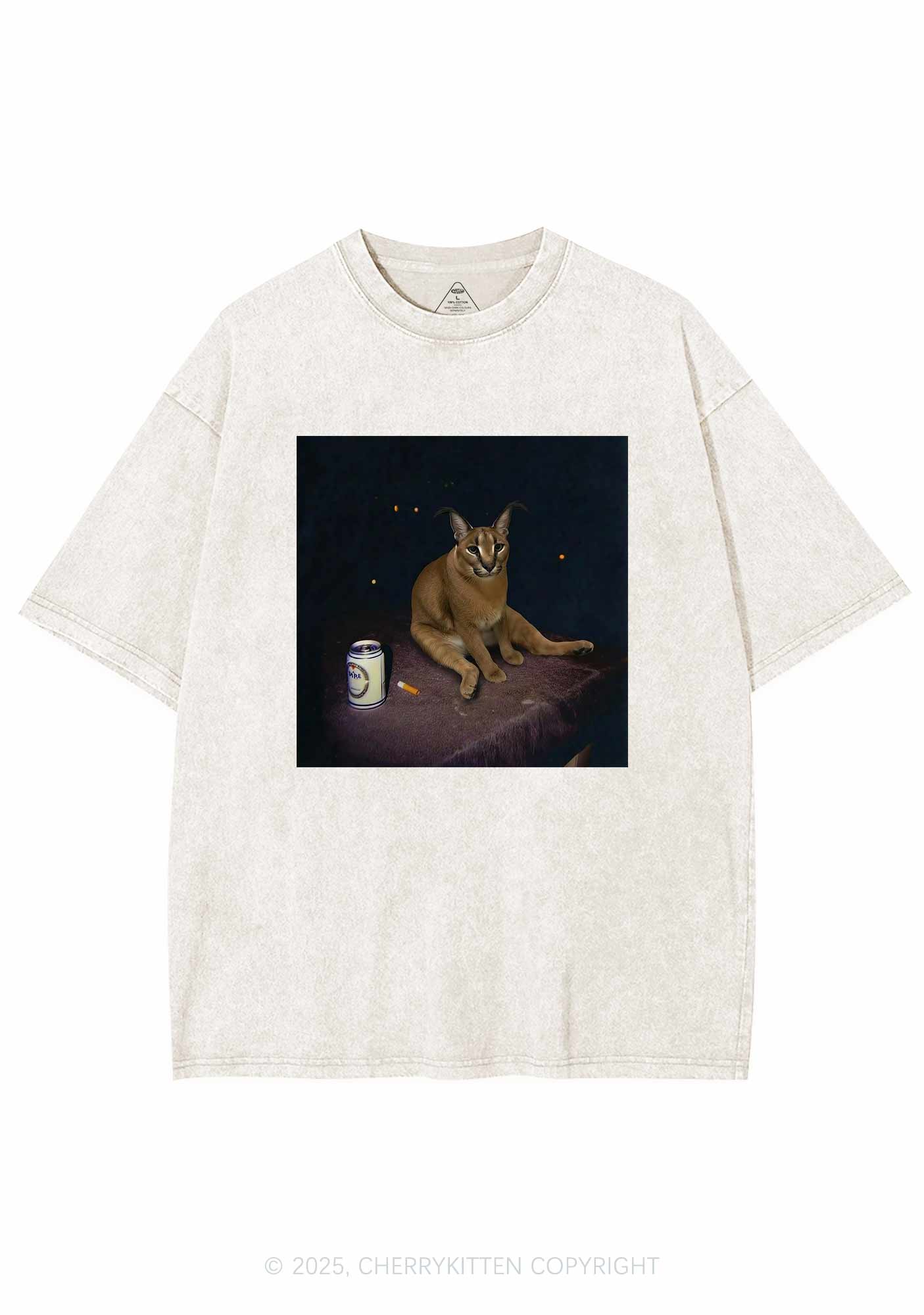 Drinking Floppa Y2K Shirts Washed Tee Cherrykitten