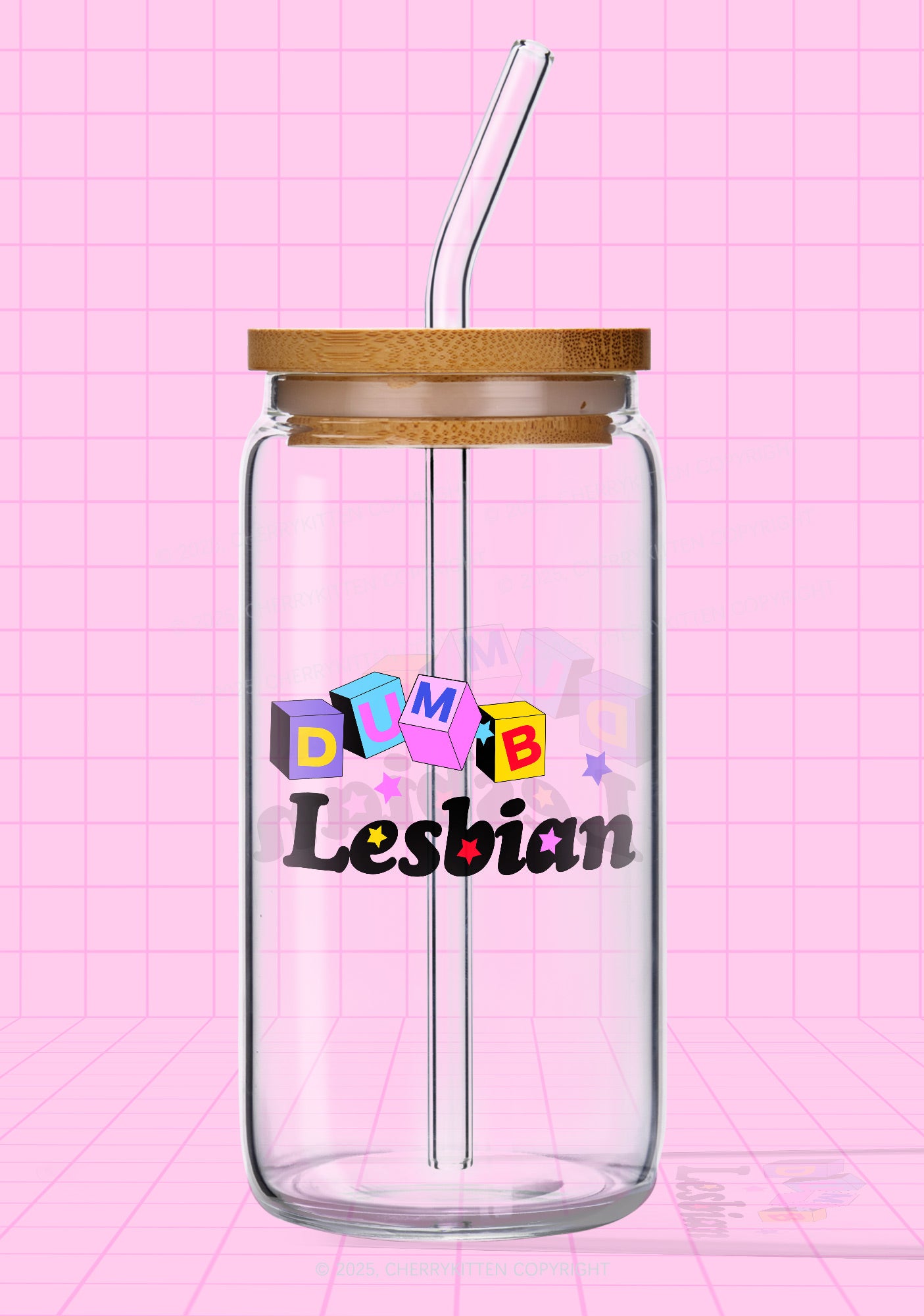 Dumb Lesbian Pride Y2K Printed Glass Cup Cherrykitten