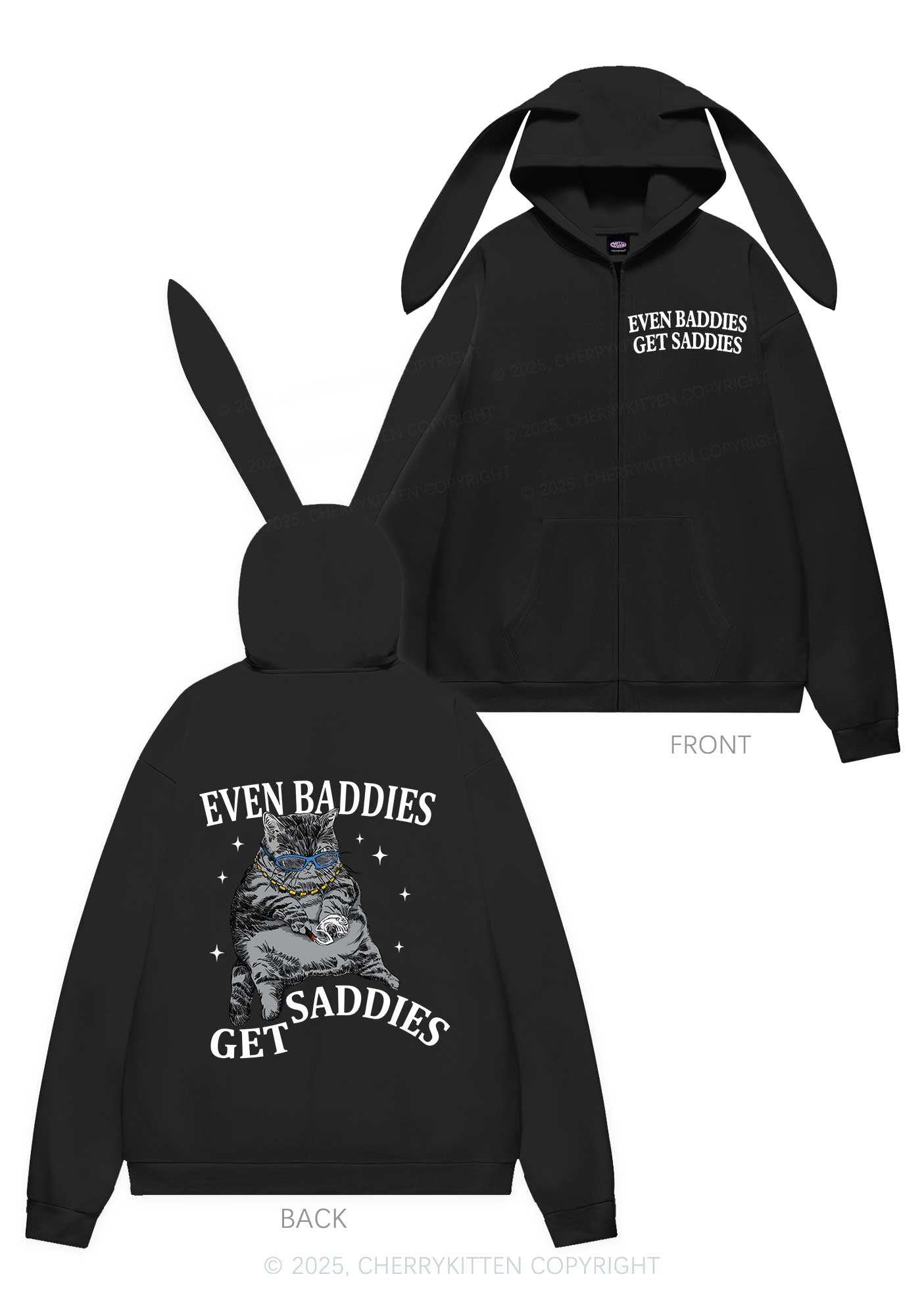 Even Baddies Get Saddies Y2K Bunny Ear Zip Hoodie Cherrykitten
