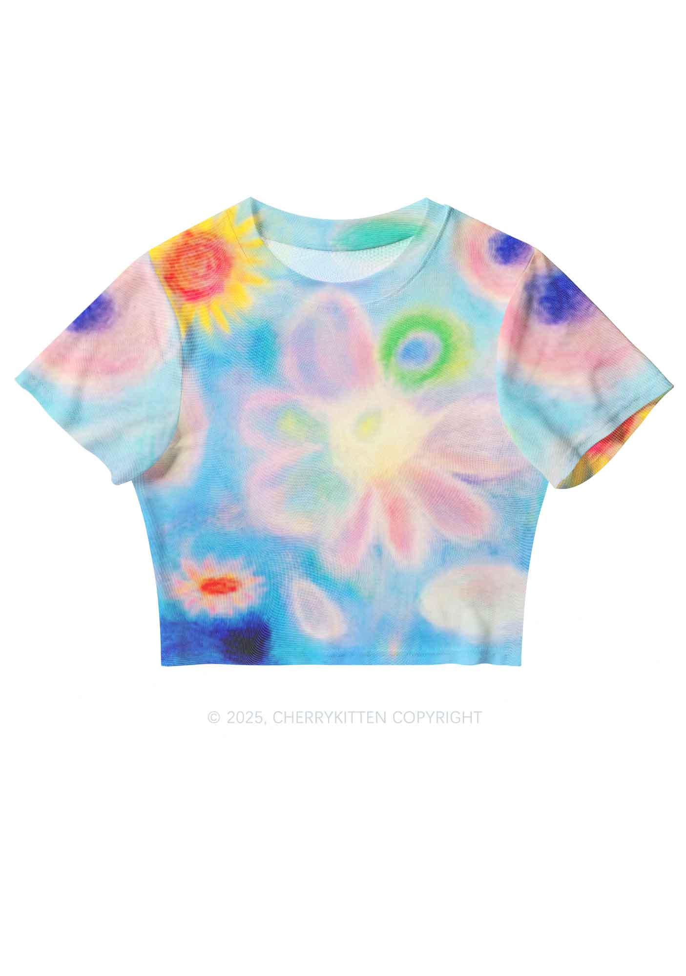 Flower Art Y2K Mesh Crop Top Cherrykitten
