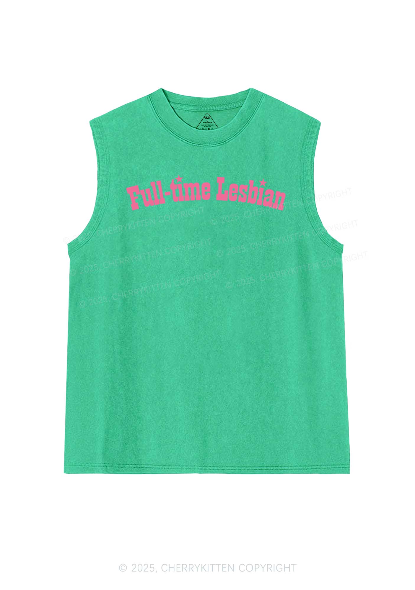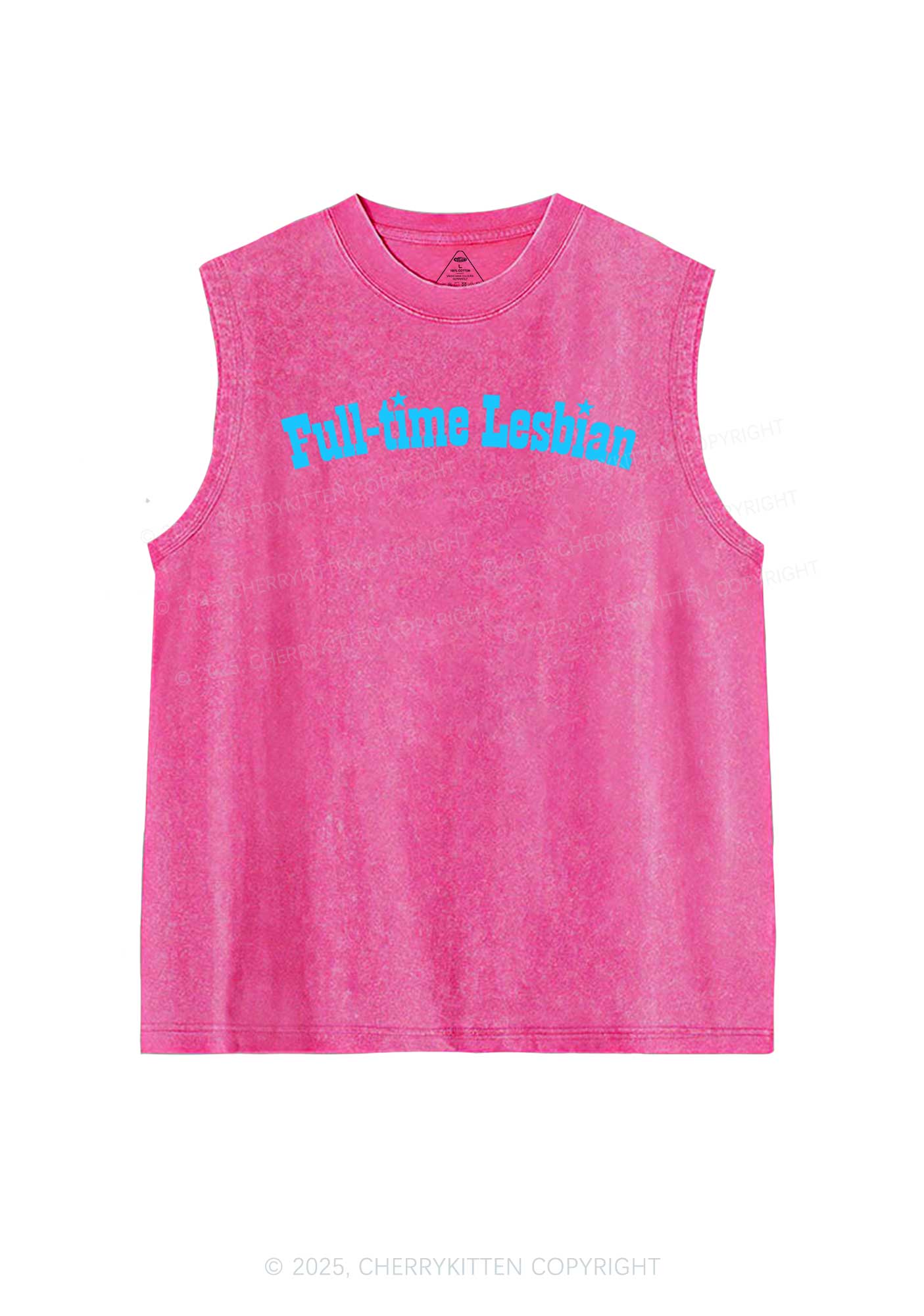 Full Time Lesbian Pride Y2K Washed Muscle Tank Cherrykitten