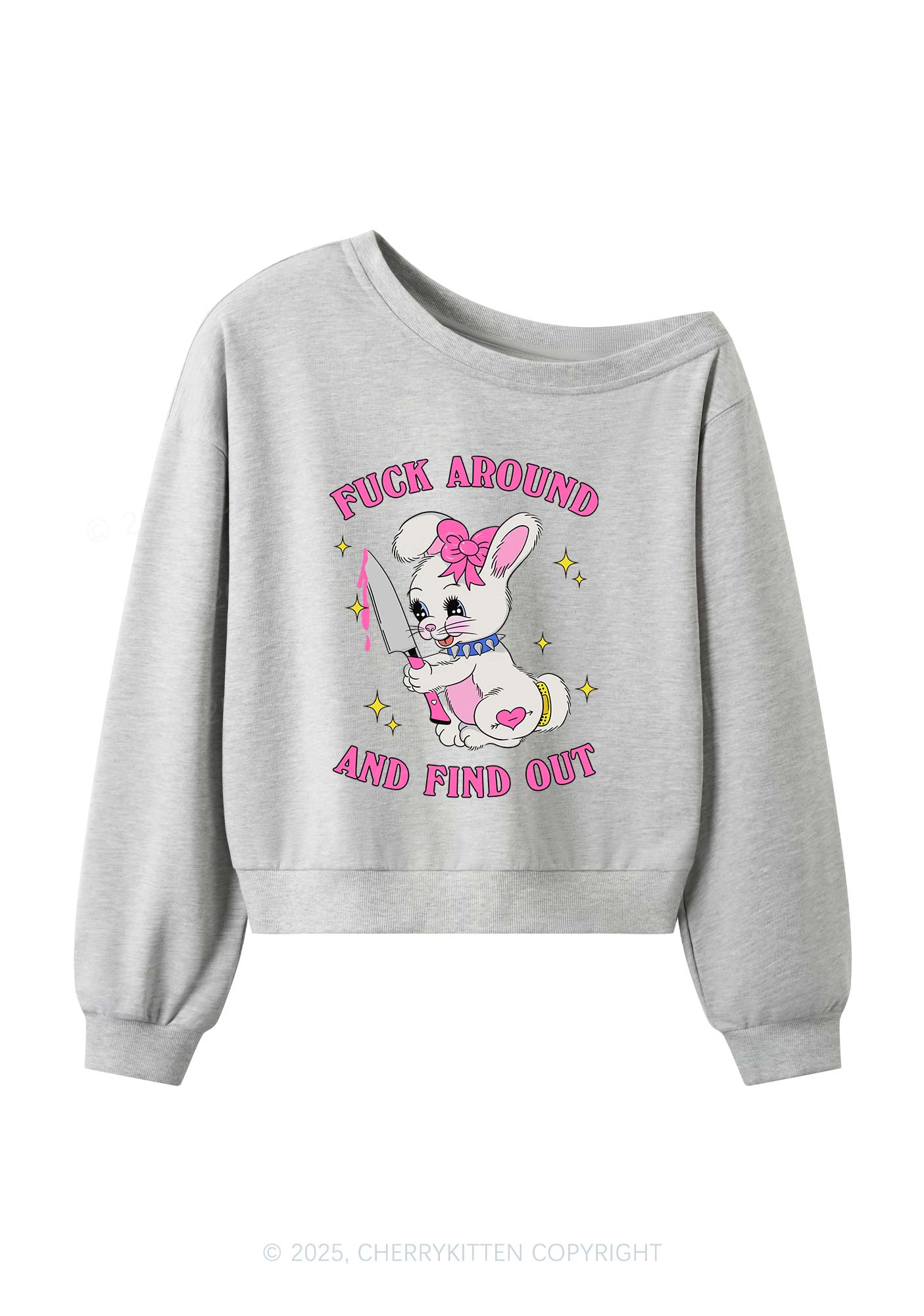 Fxxk Around Bunny Y2K Off Shoulder Sweatshirts Cherrykitten