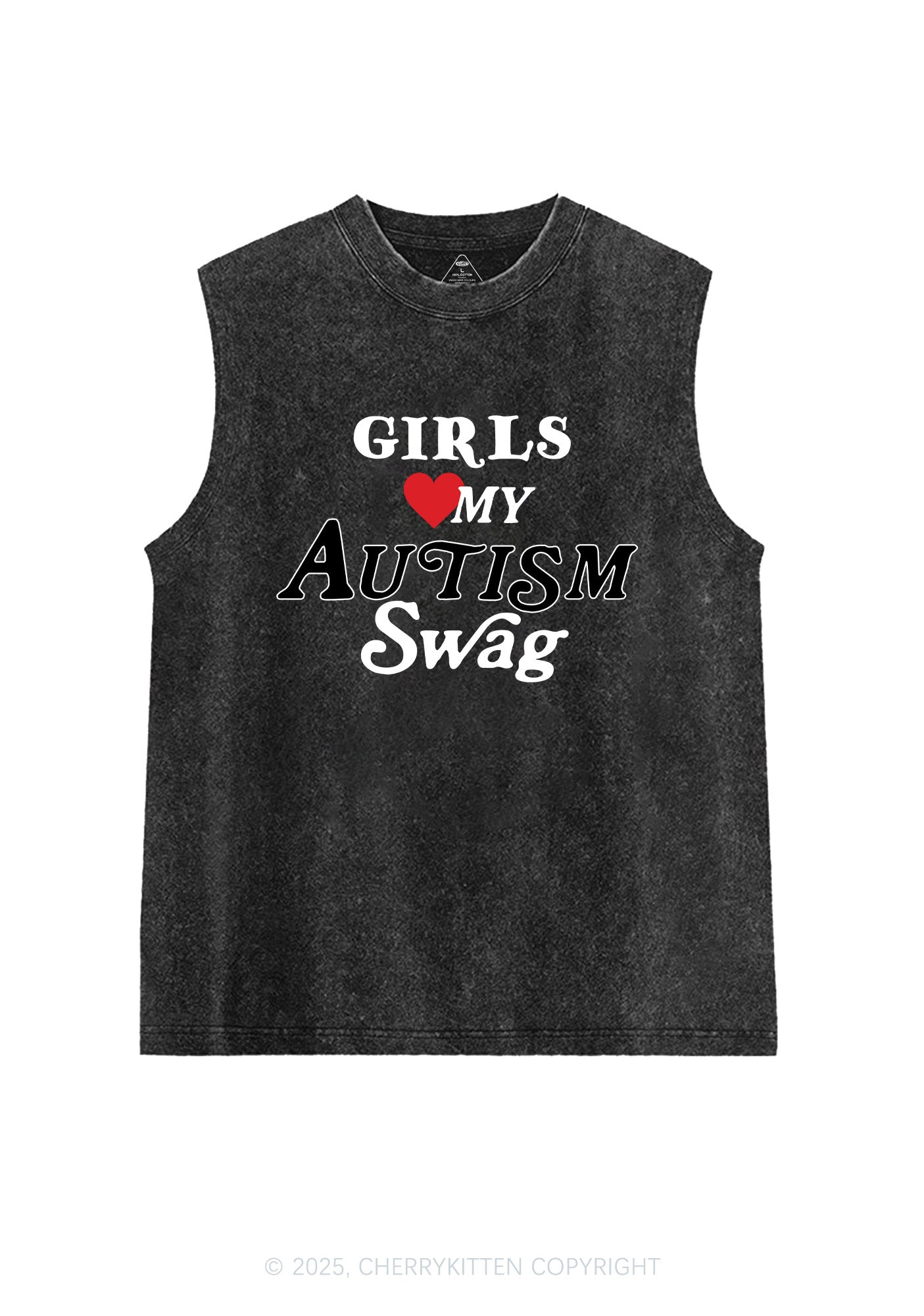 Girls Love Autism Swag Y2K Washed Muscle Tank Cherrykitten