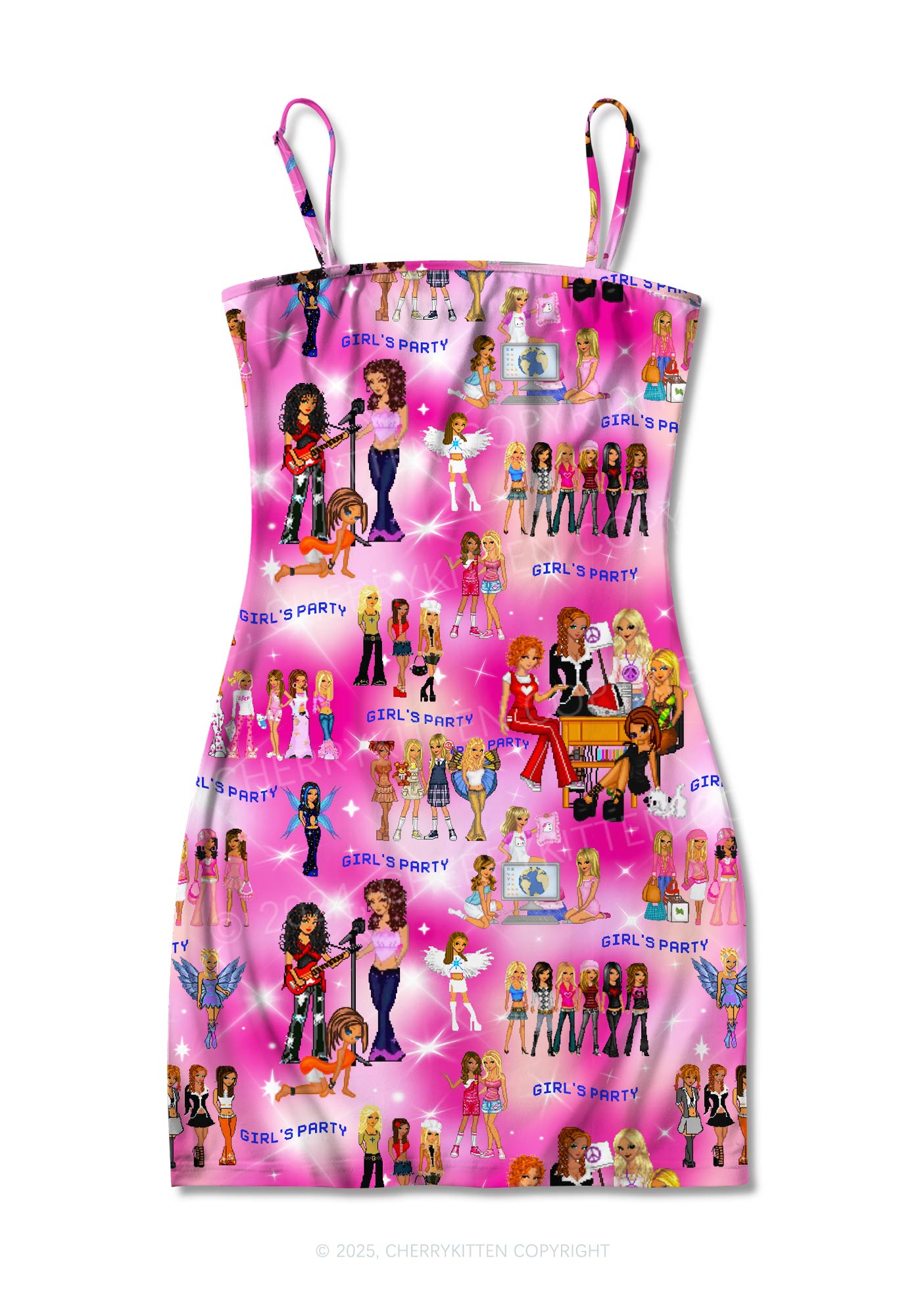 Girls Party Y2K Print Slip Dress Cherrykitten