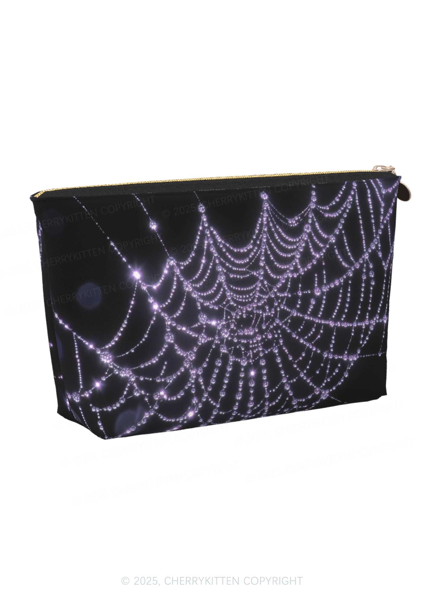 Glistening Spiderweb Y2K Leather Makeup Bag Cherrykitten
