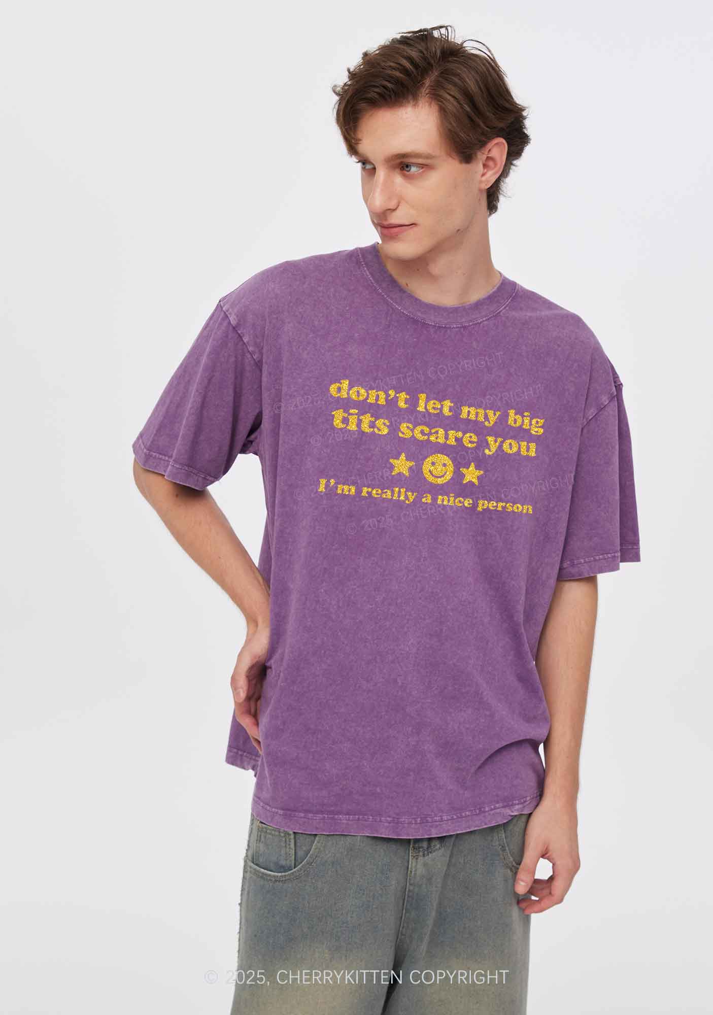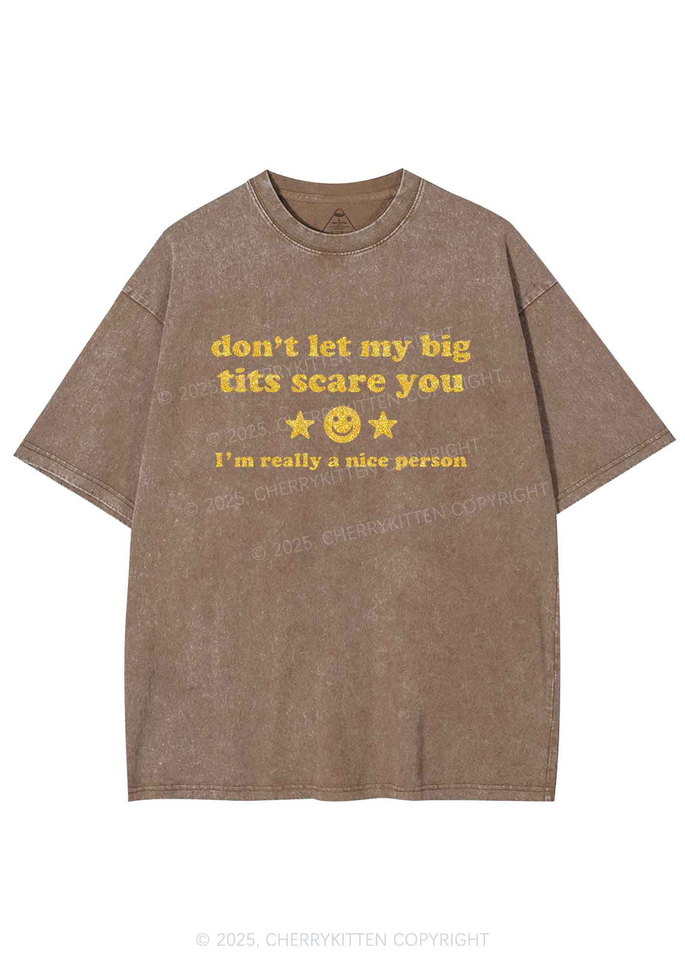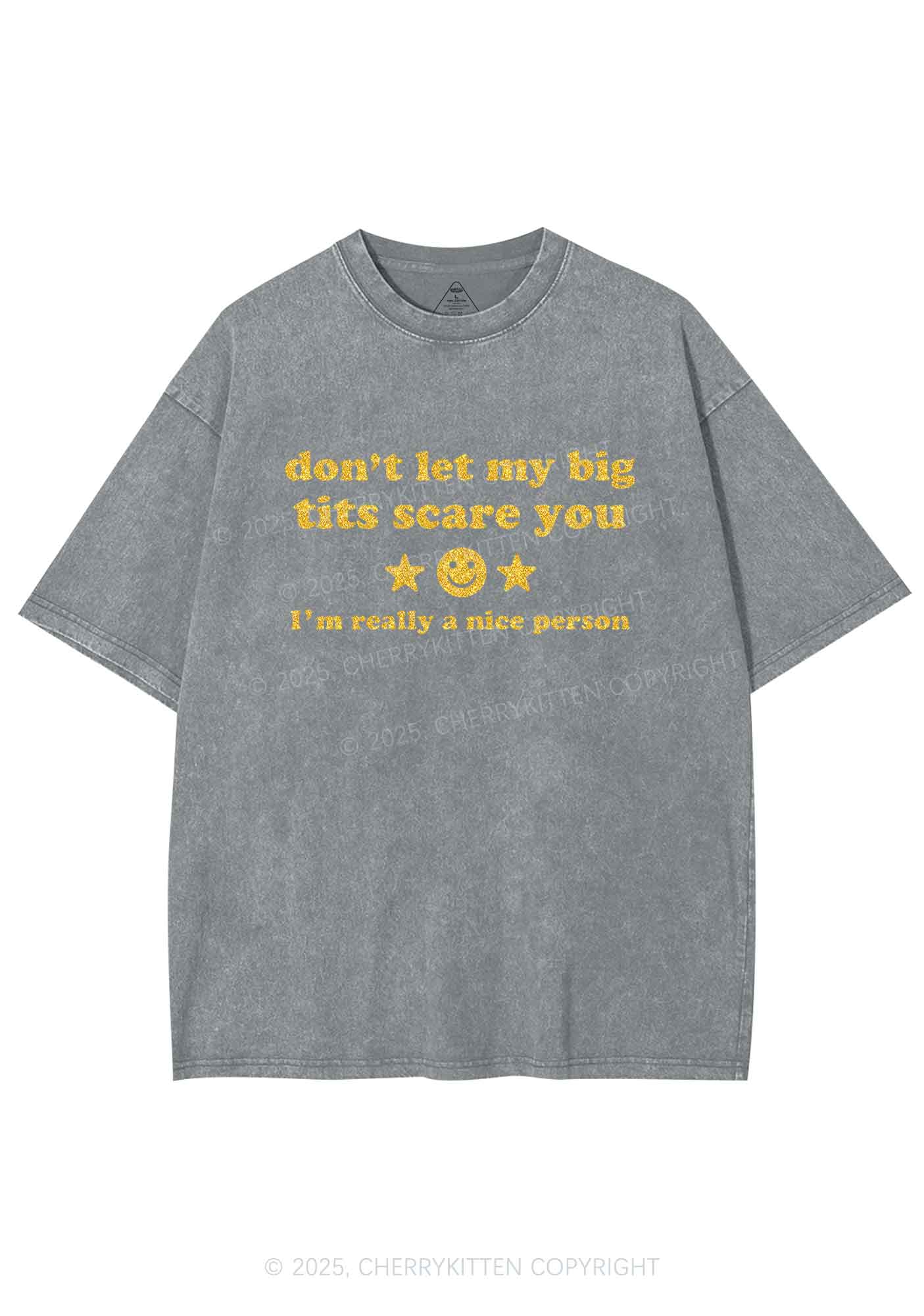 Glitter Dont Let My Big Txts Scare You Y2K Shirts Washed Tee Cherrykitten