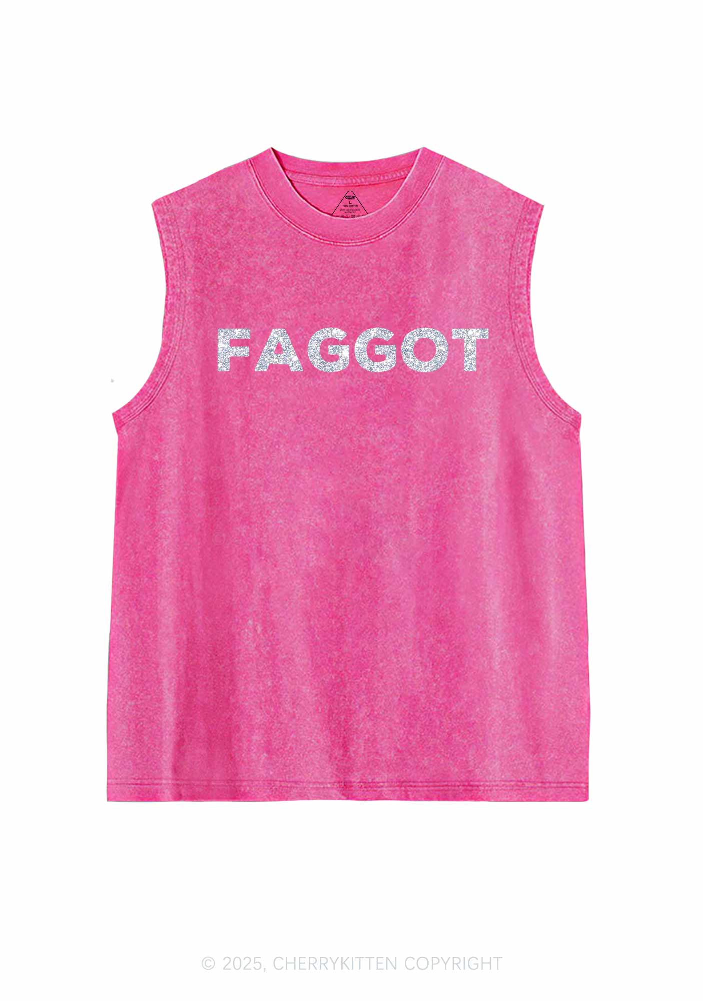Glitter Faggot Pride Y2K Washed Muscle Tank Cherrykitten