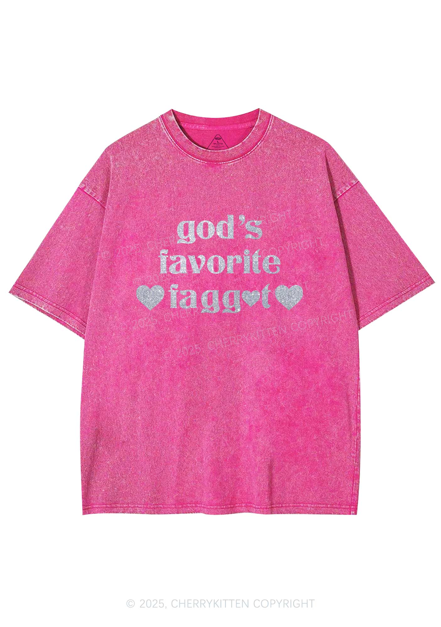Glitter Gods Favorite Faggot Pride Y2K Shirts Washed Tee Cherrykitten