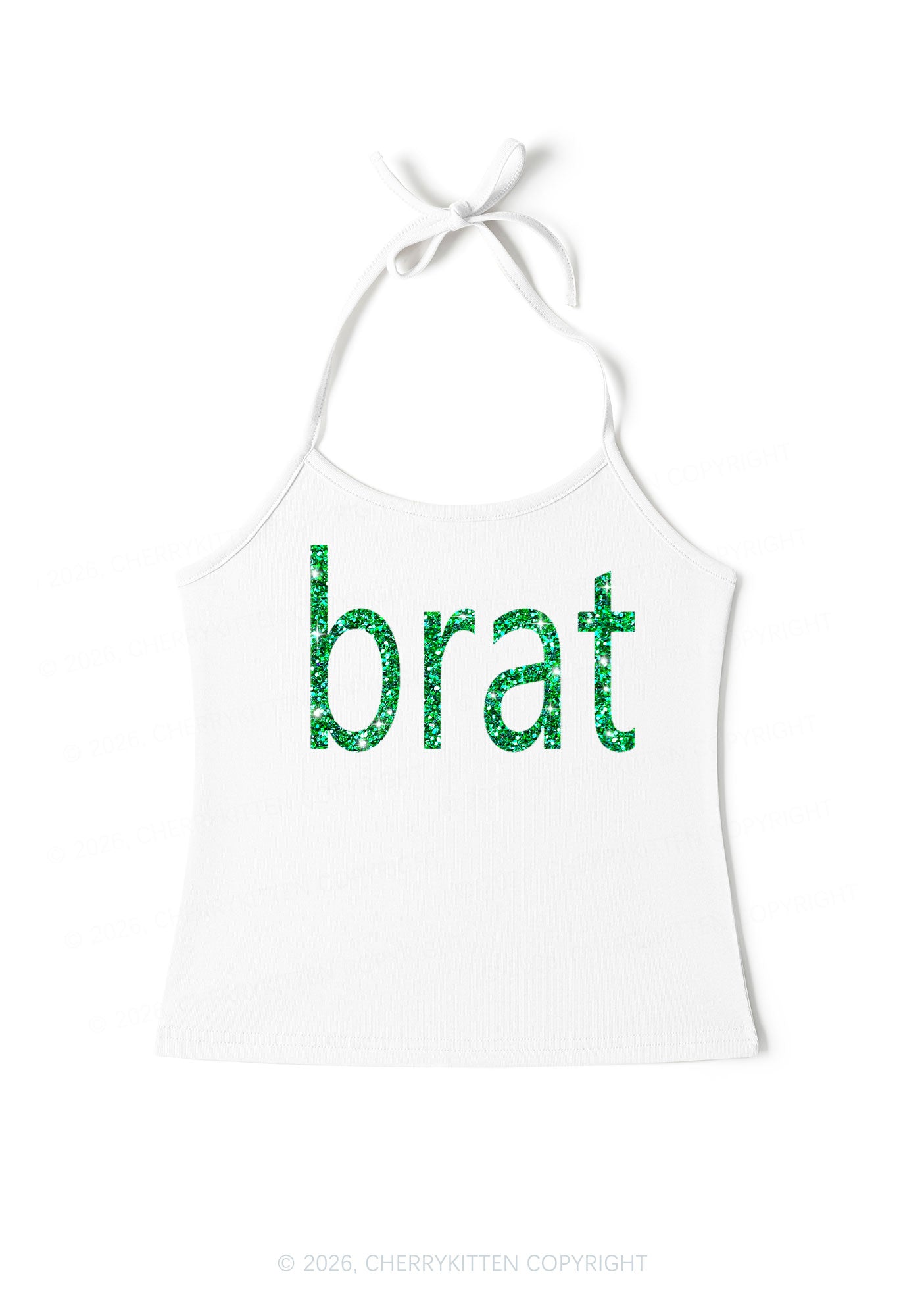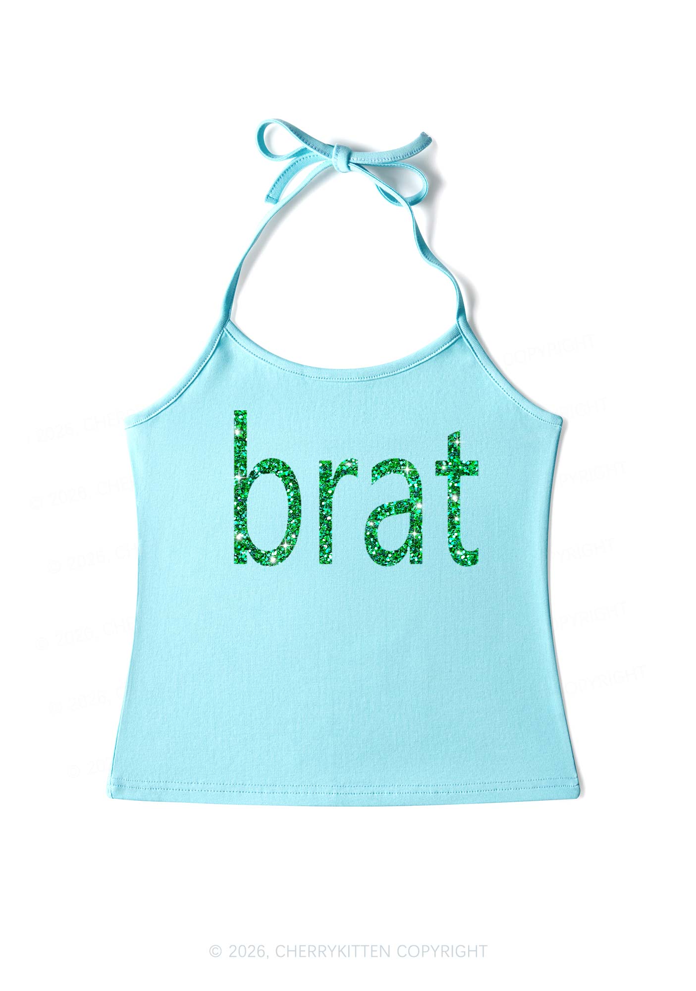 Glitter Green Brat Y2K Halter Neck Cami Cherrykitten