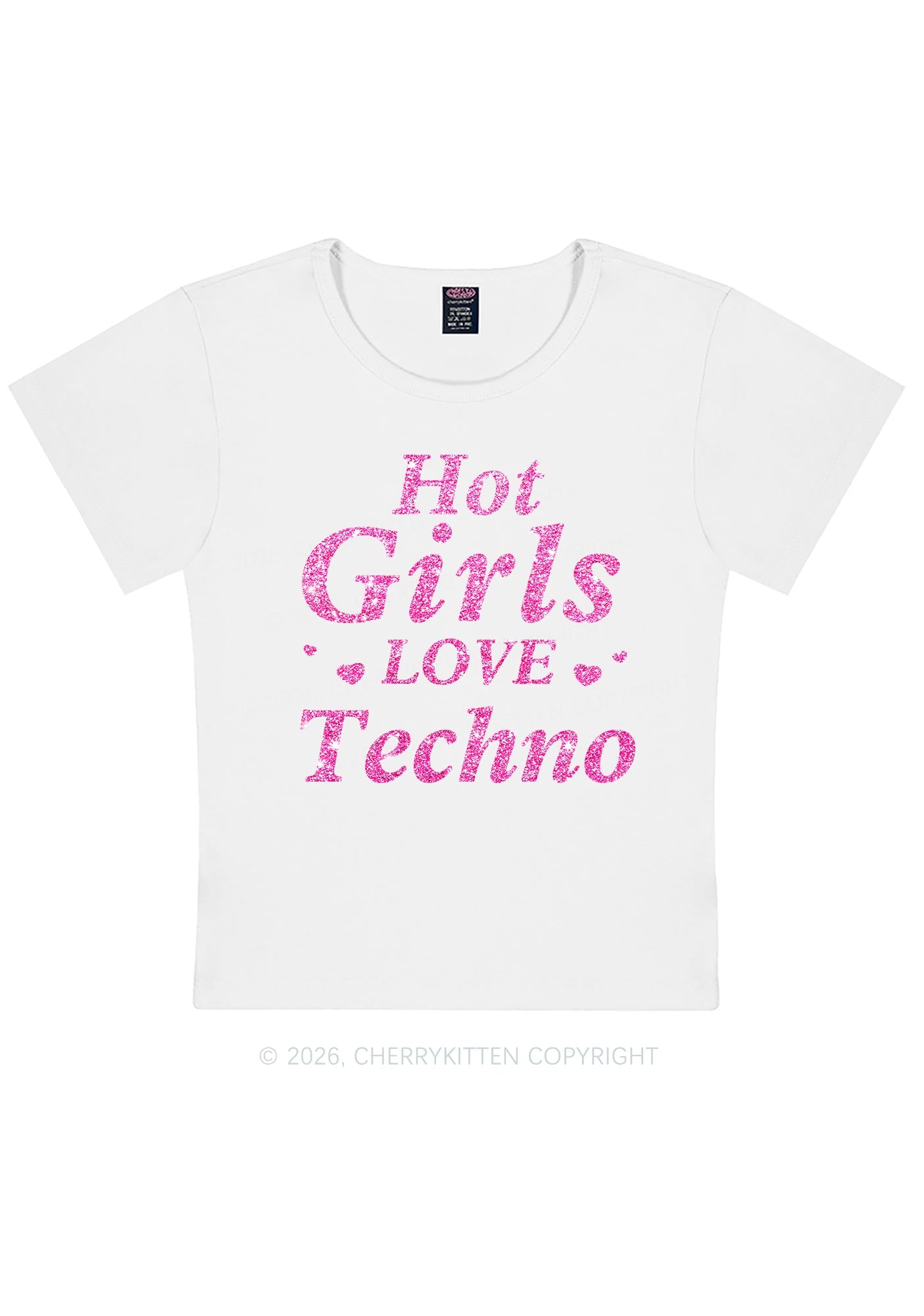 Glitter Hot Girls Love Techno Y2K Baby Tee Cherrykitten