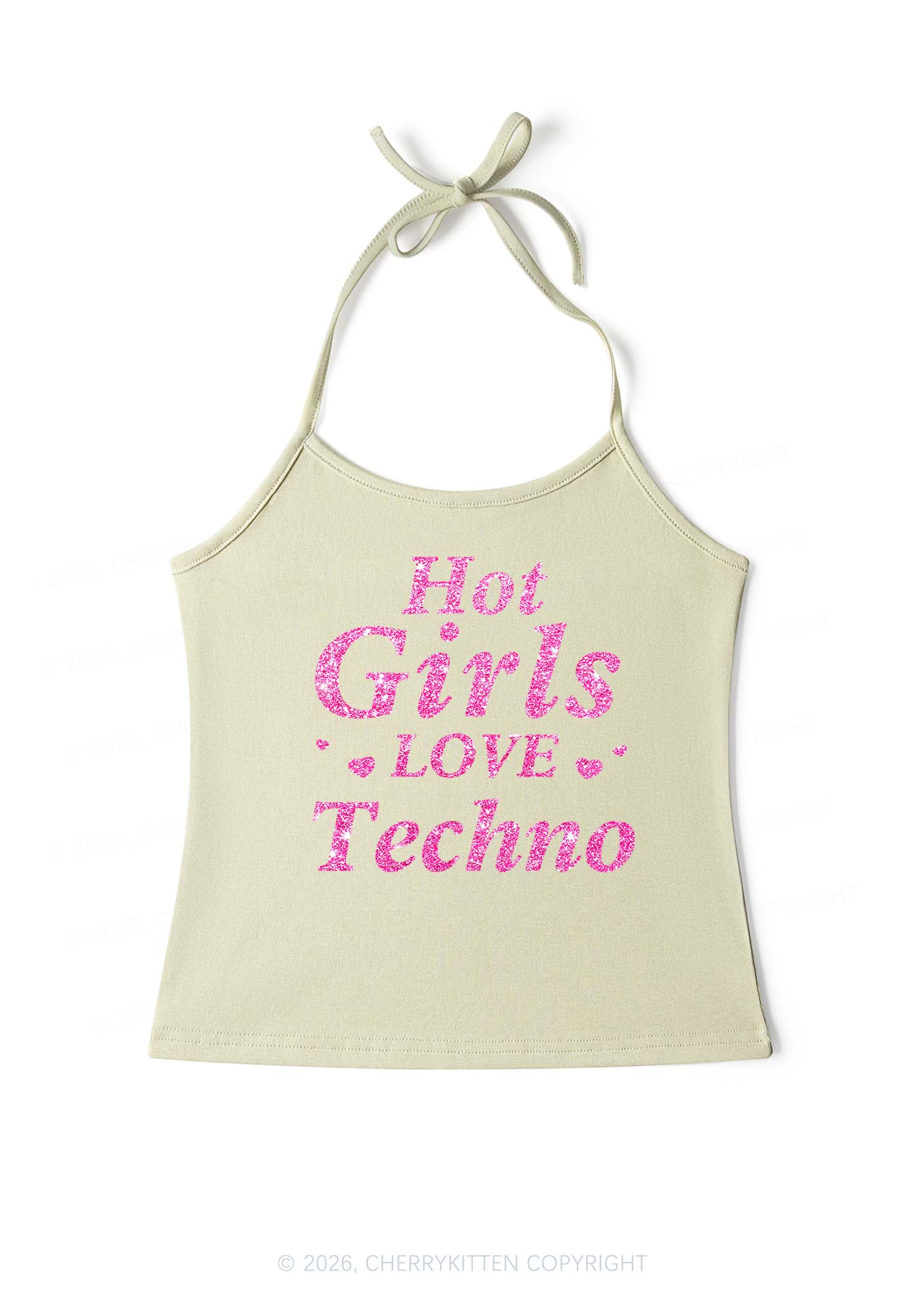 Glitter Hot Girls Love Techno Y2K Halter Neck Cami Cherrykitten