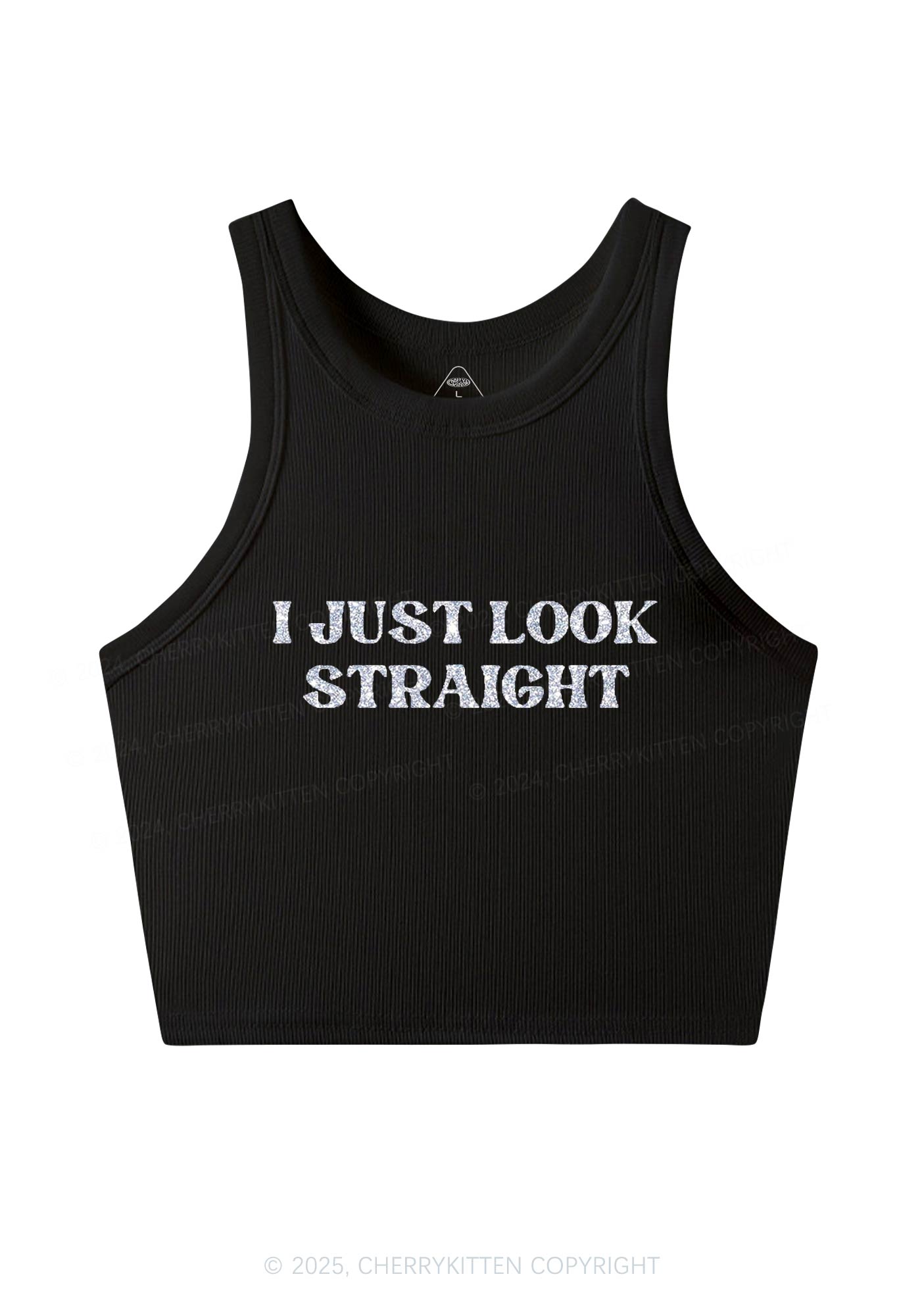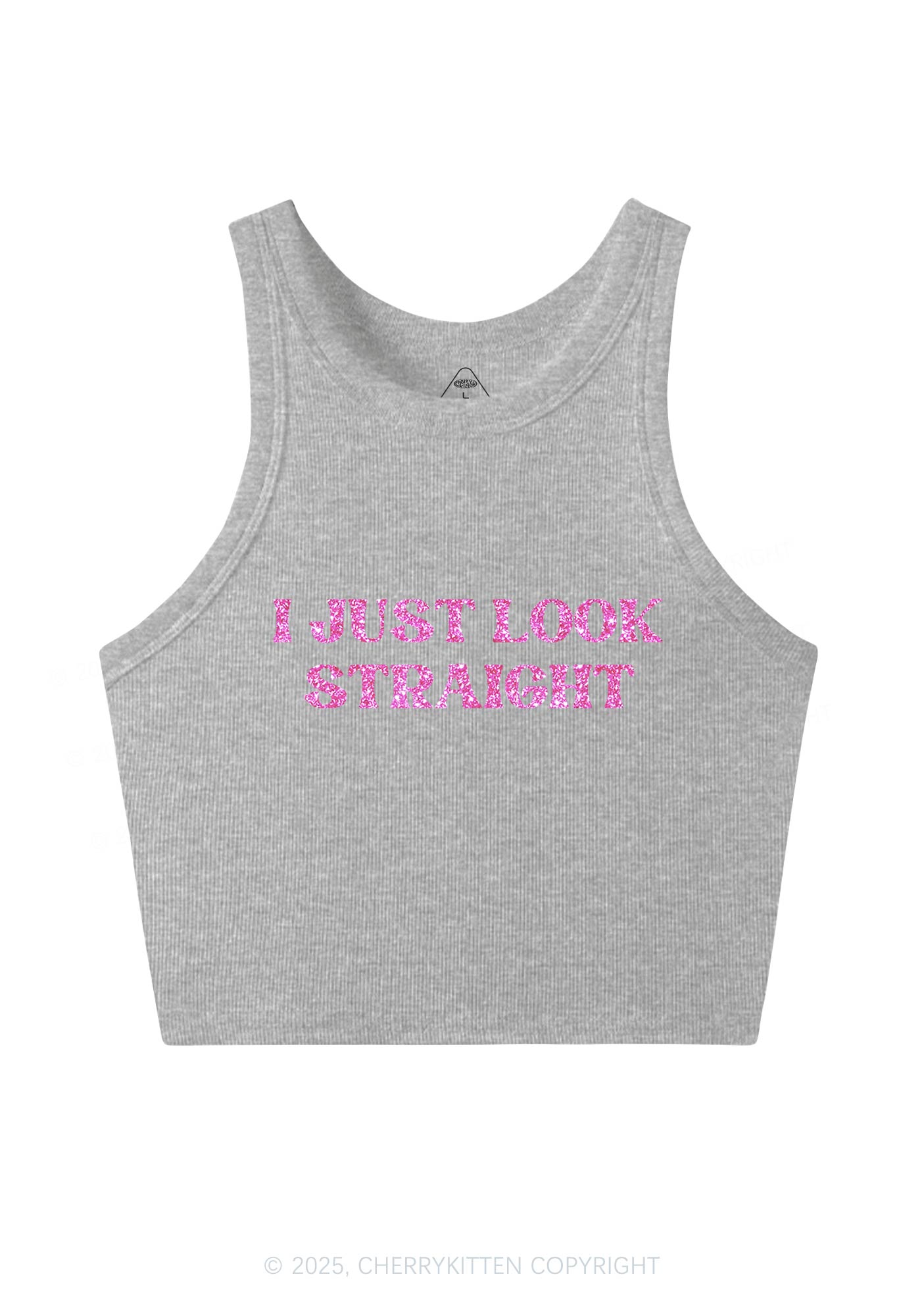 Glitter I Just Look Straight Pride Y2K Crop Tank Top Cherrykitten