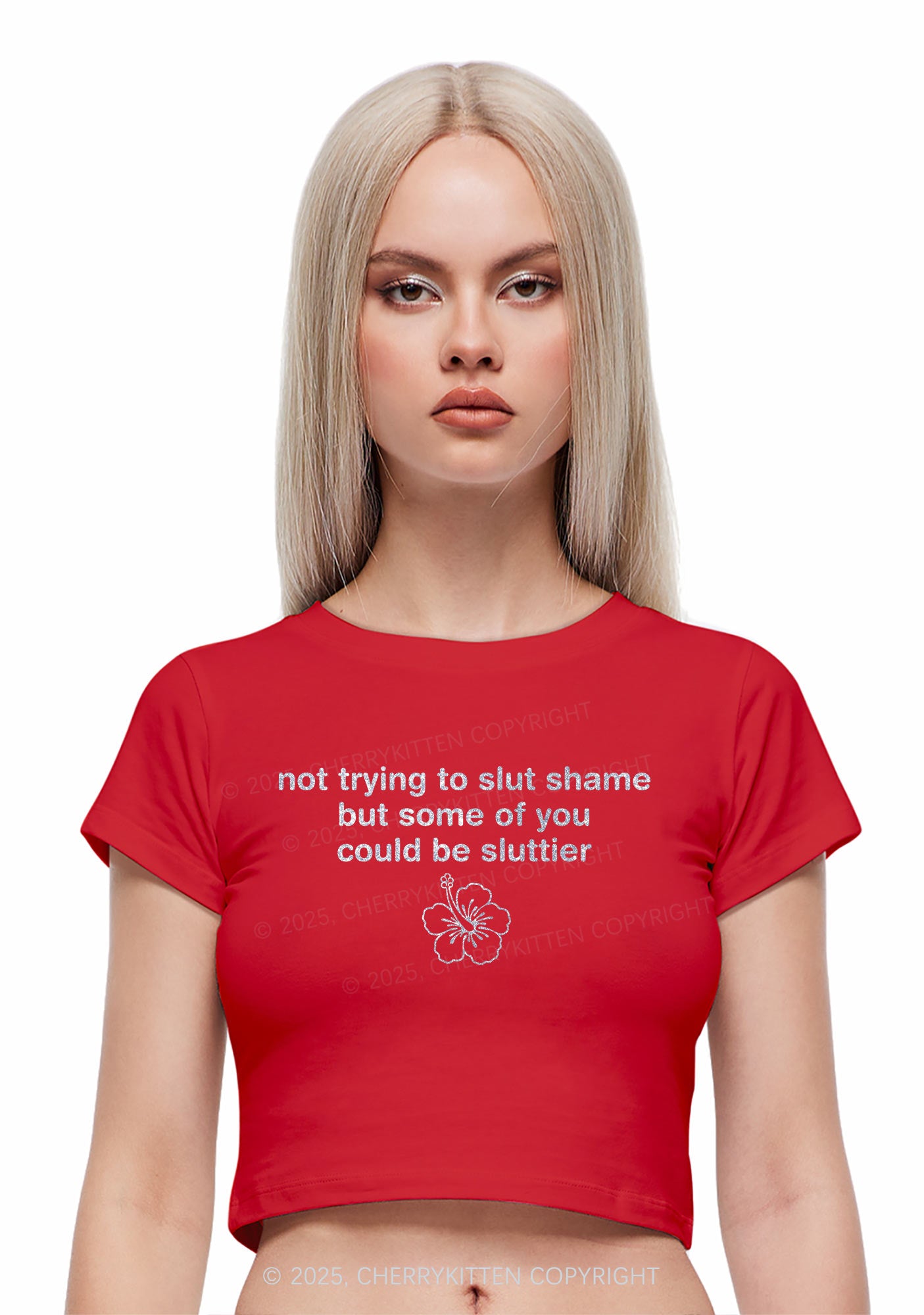 Glitter Not Trying To Slxt Shame Y2K Baby Tee Cherrykitten